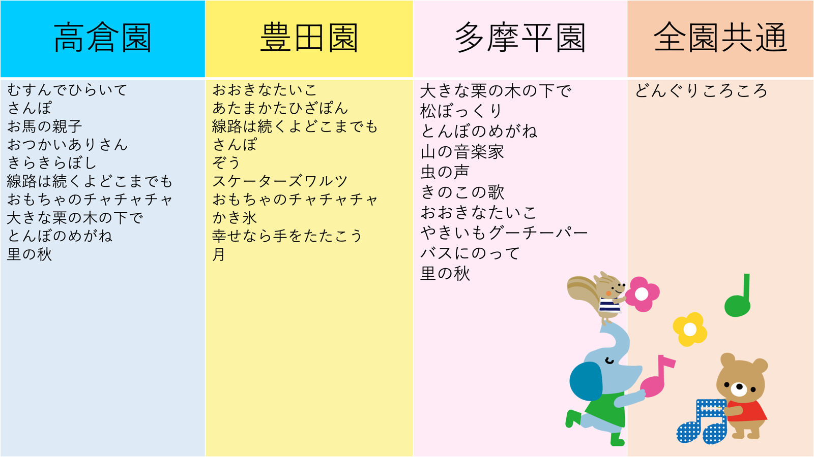アップテンポな曲調に思わず真似をしたくなる楽しい歌詞が歌う意欲を搔き立てます♪