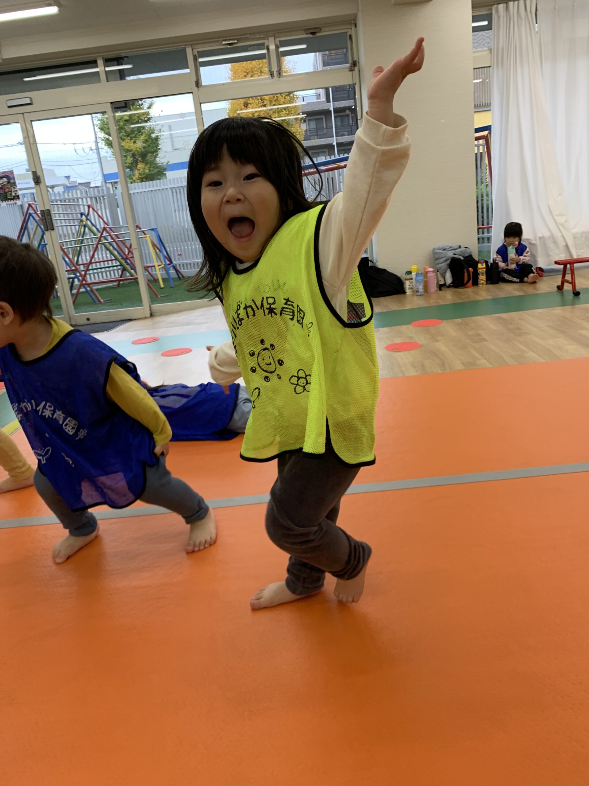 「〇〇ちゃん、すごいジャンプだね!元気いっぱいでかっこいいよ!」と先生が声をかけると、みんなさらに張り切ってジャンプしていました。