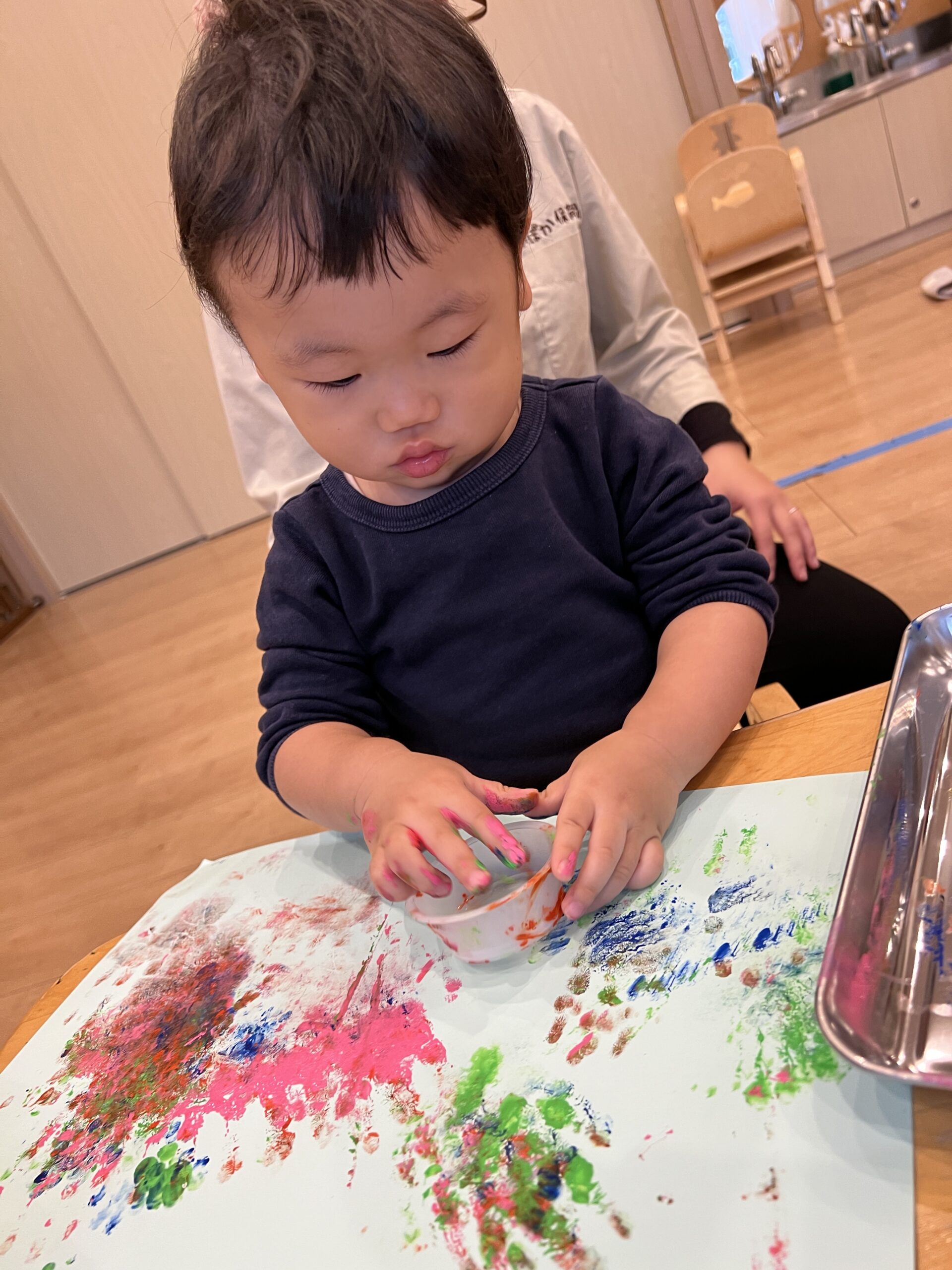 色とりどりの絵の具が画用紙に広がる様子に、子どもたちは夢中になって楽しんでいました。