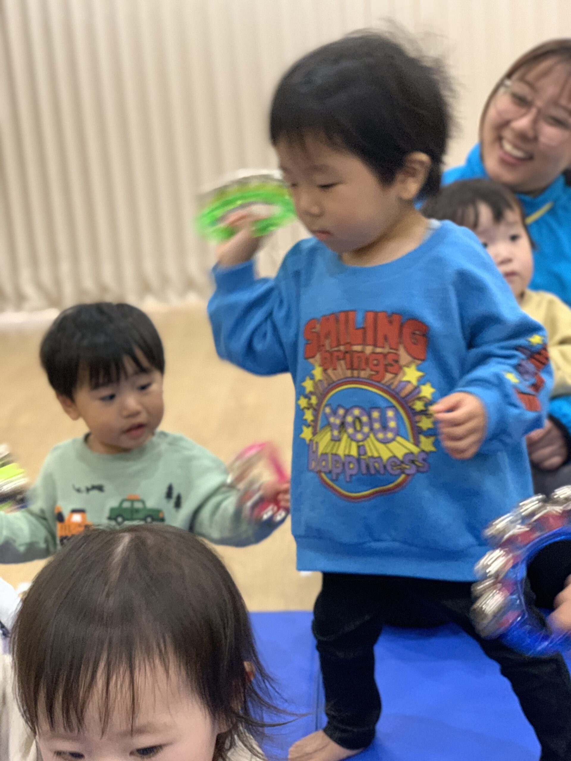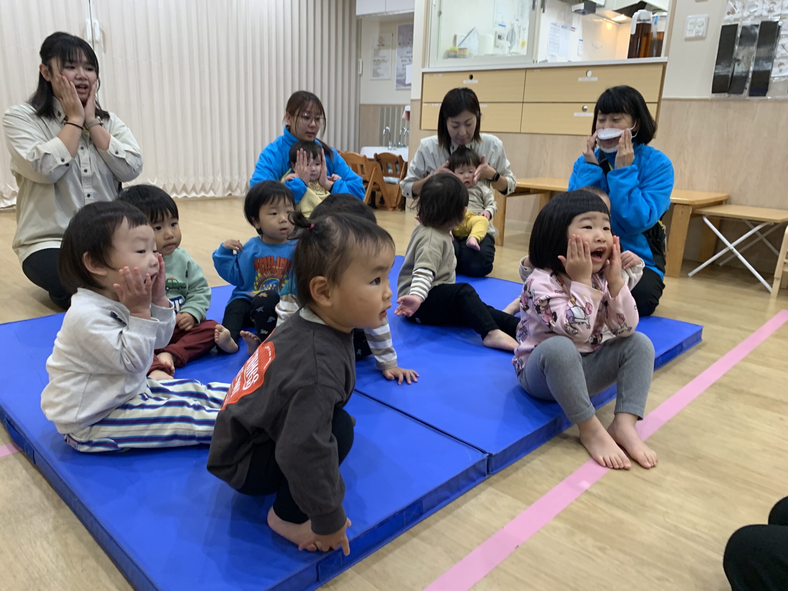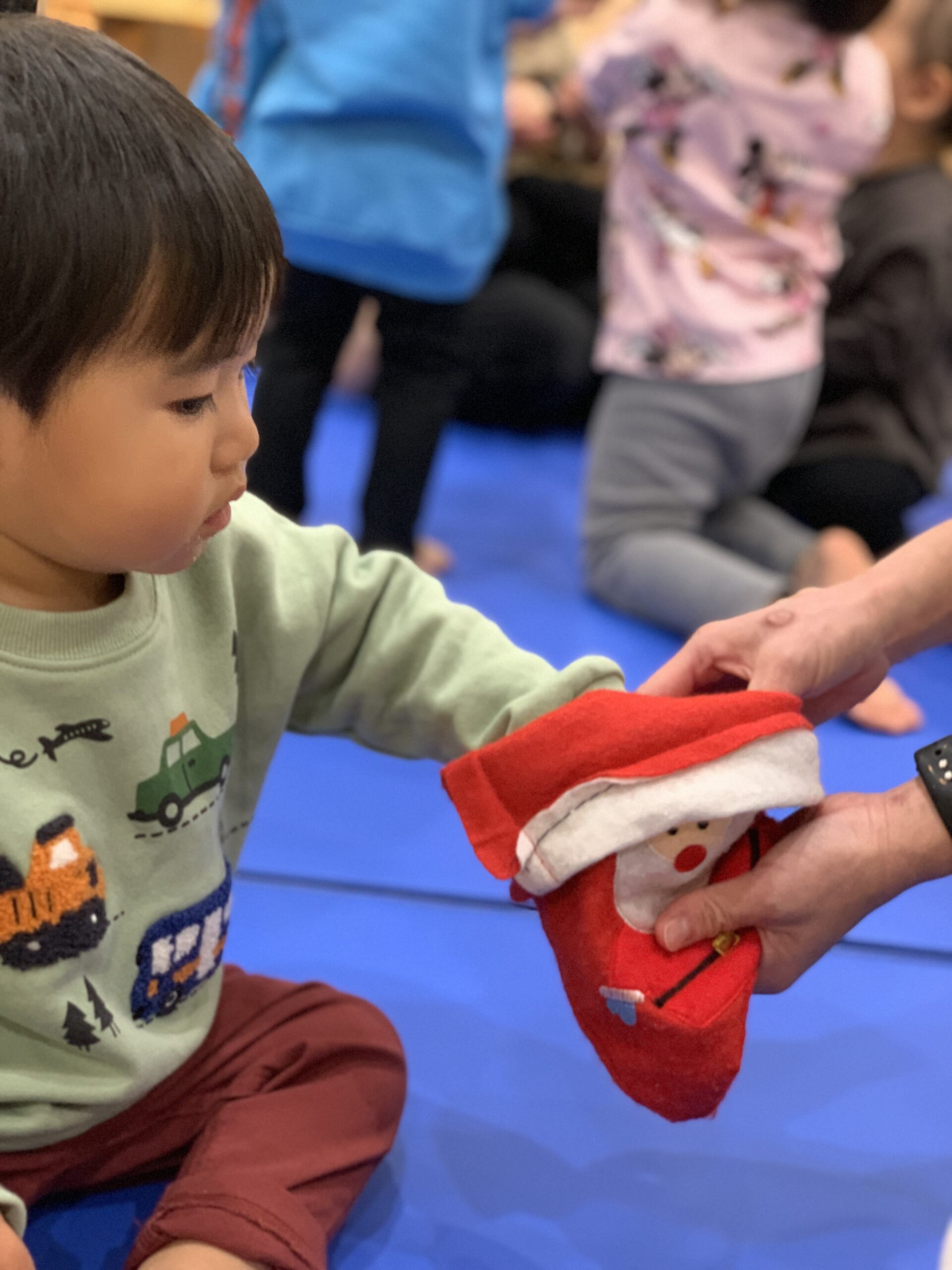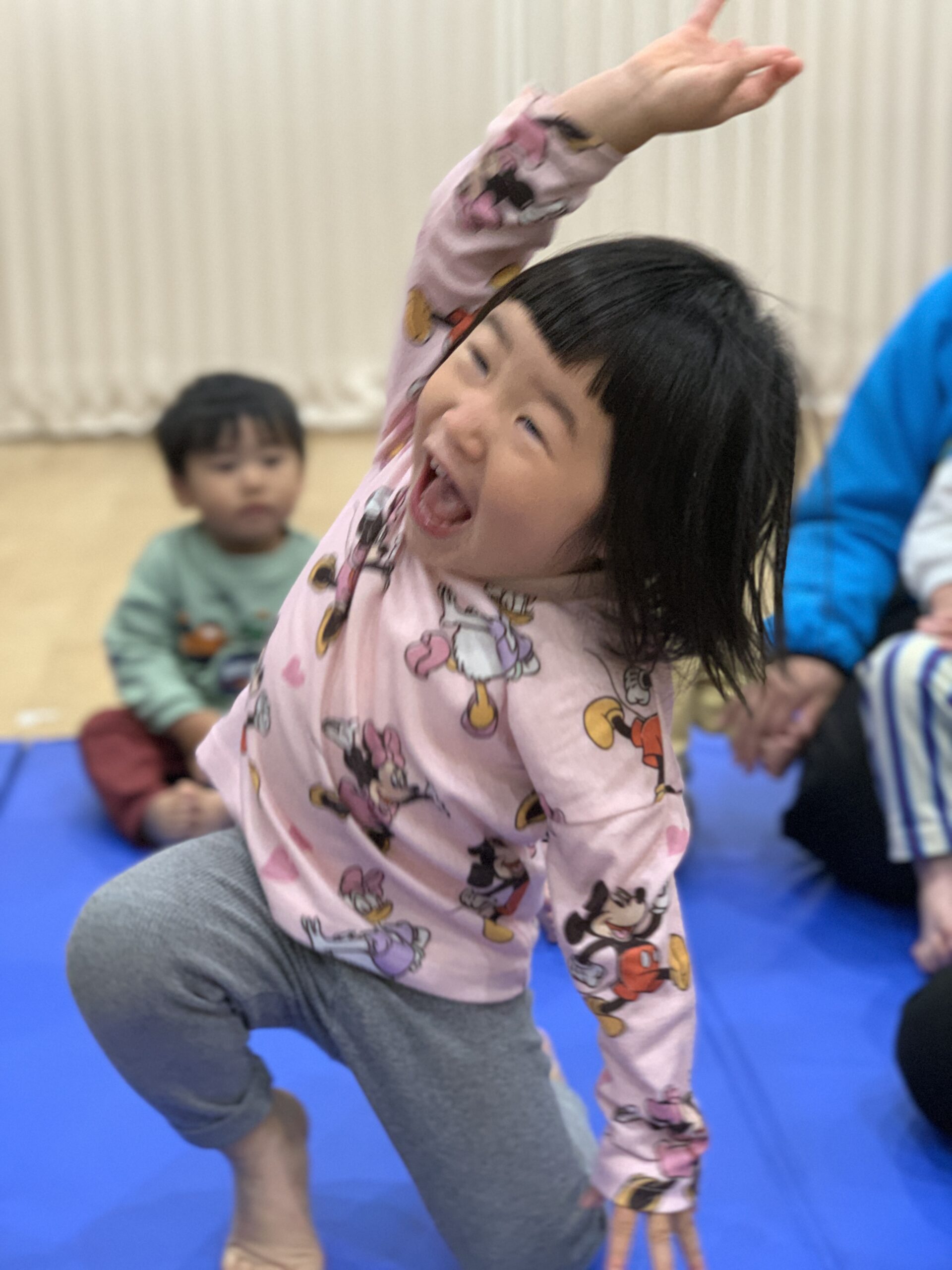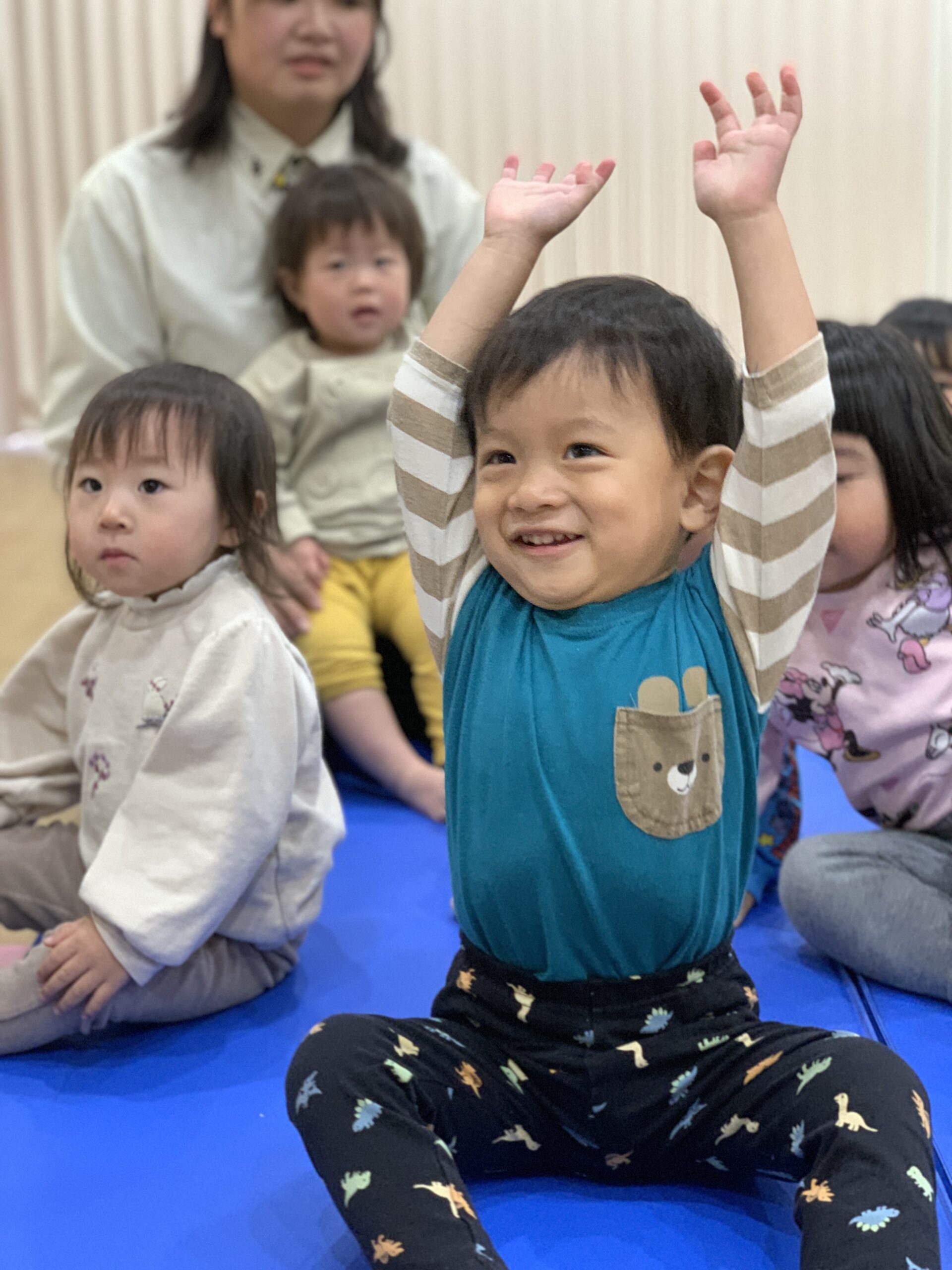 入室した時からわくわく元気な様子のみんなは、お返事の時から良い反応をしてくれていました。