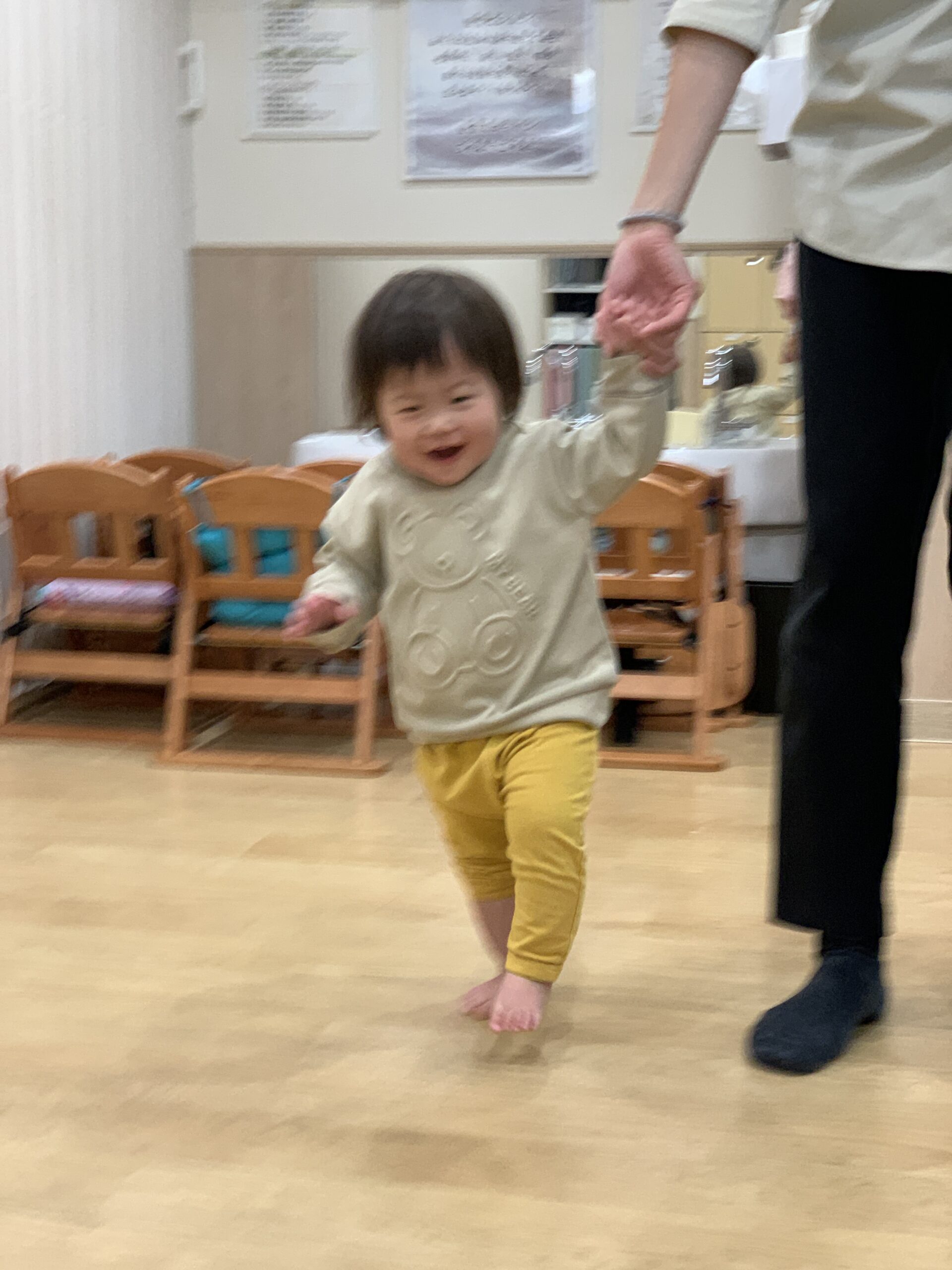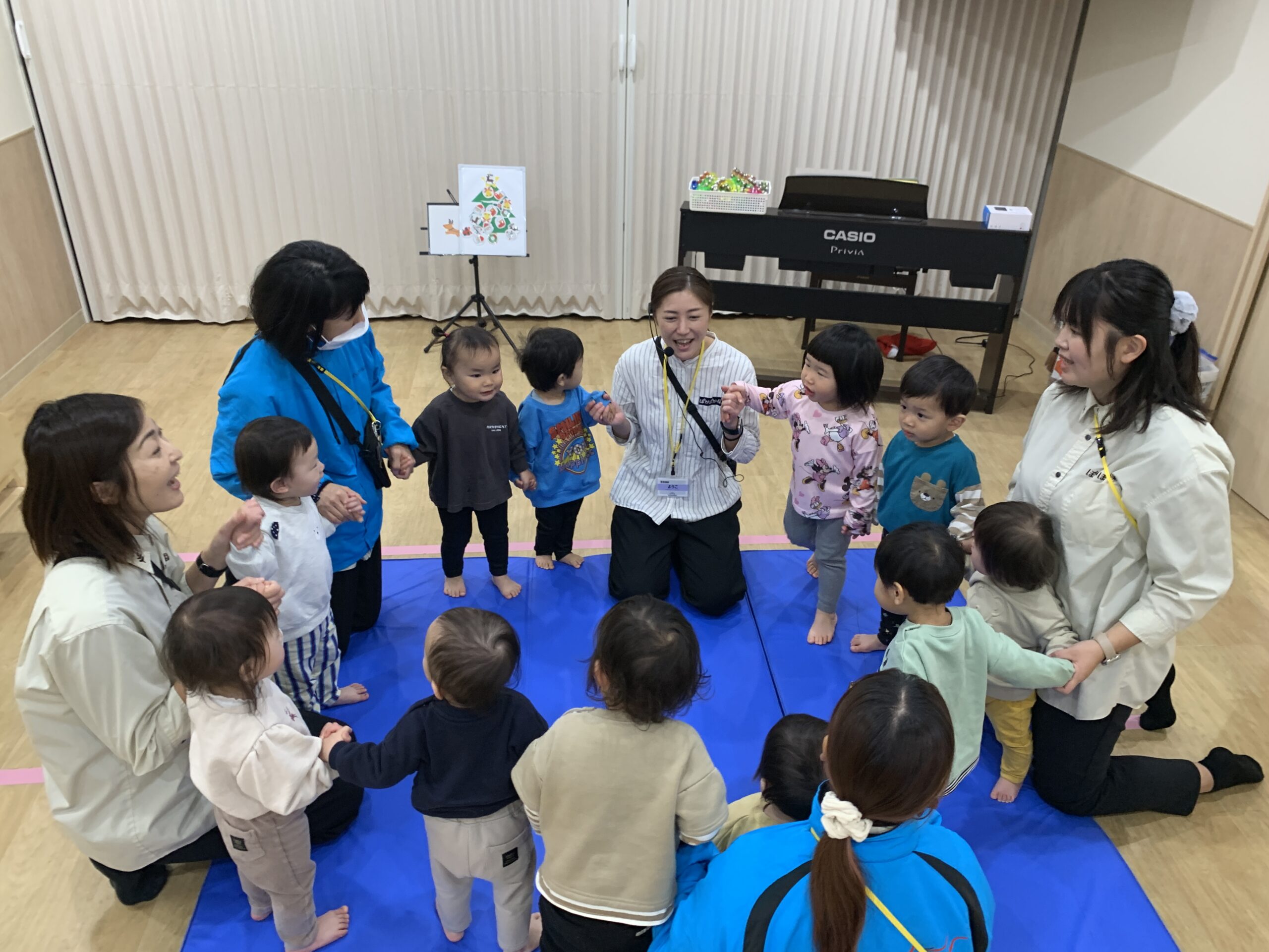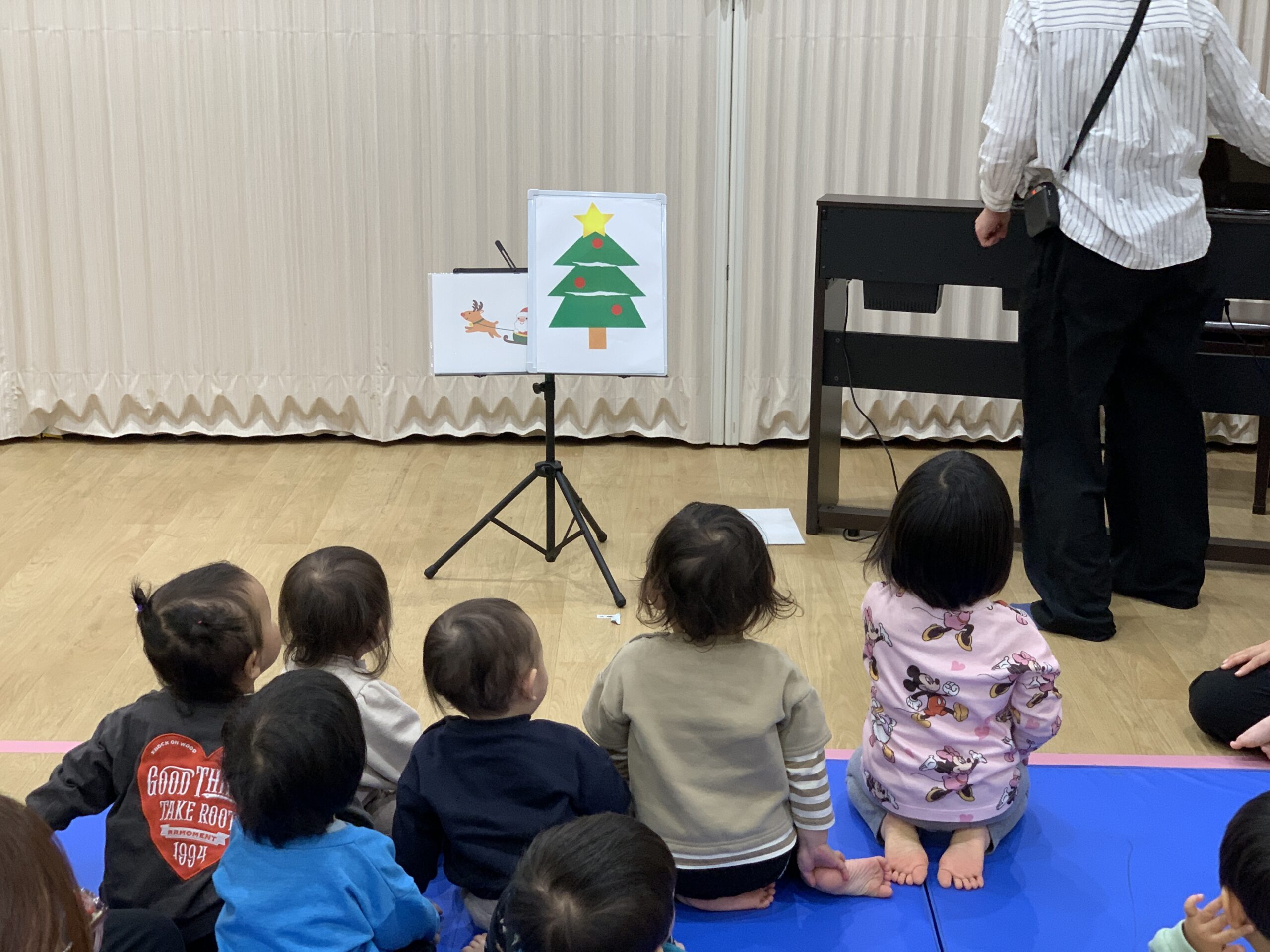 リトミックでは、ジングルベルの曲に合わせて歩きました。