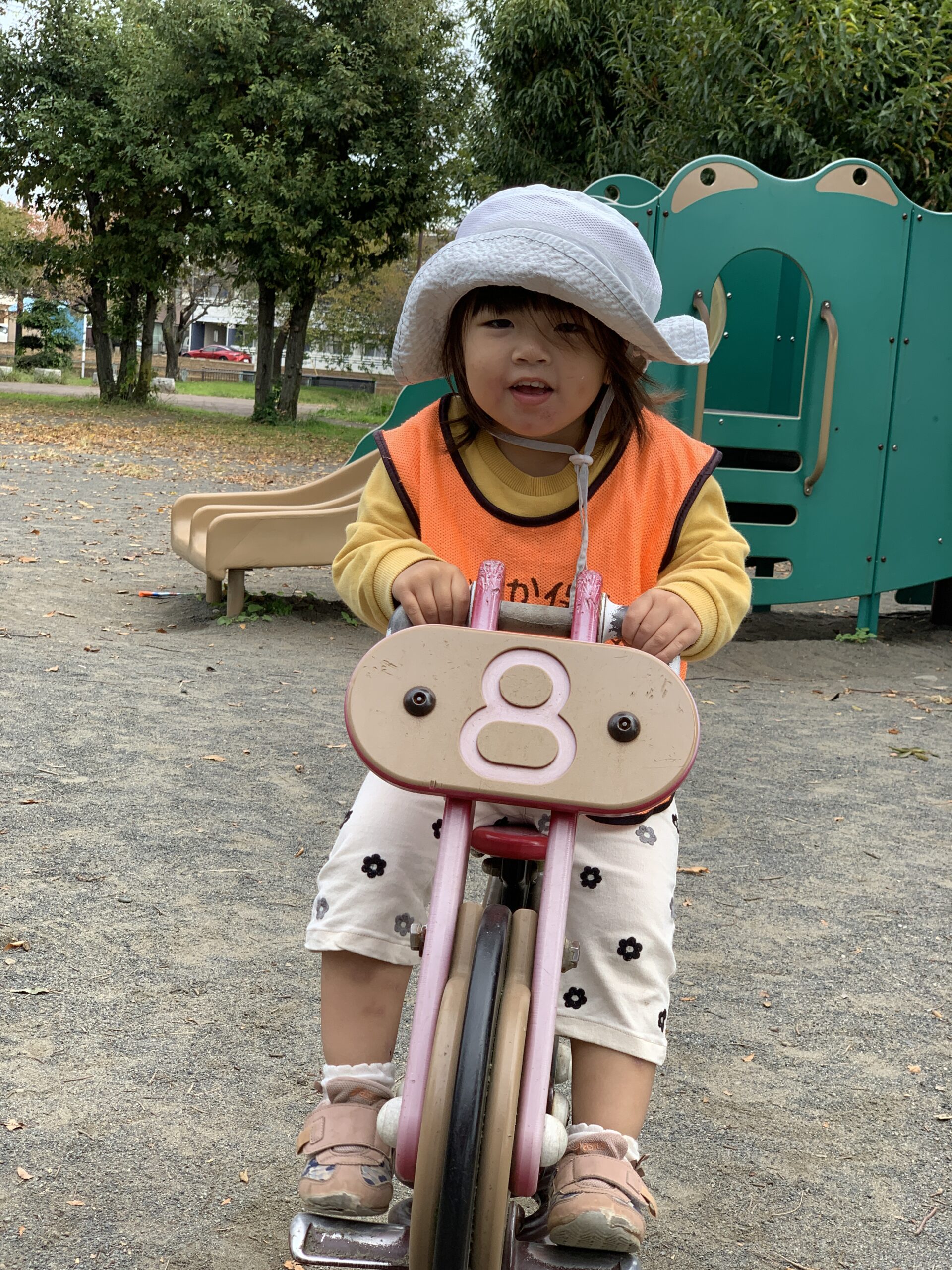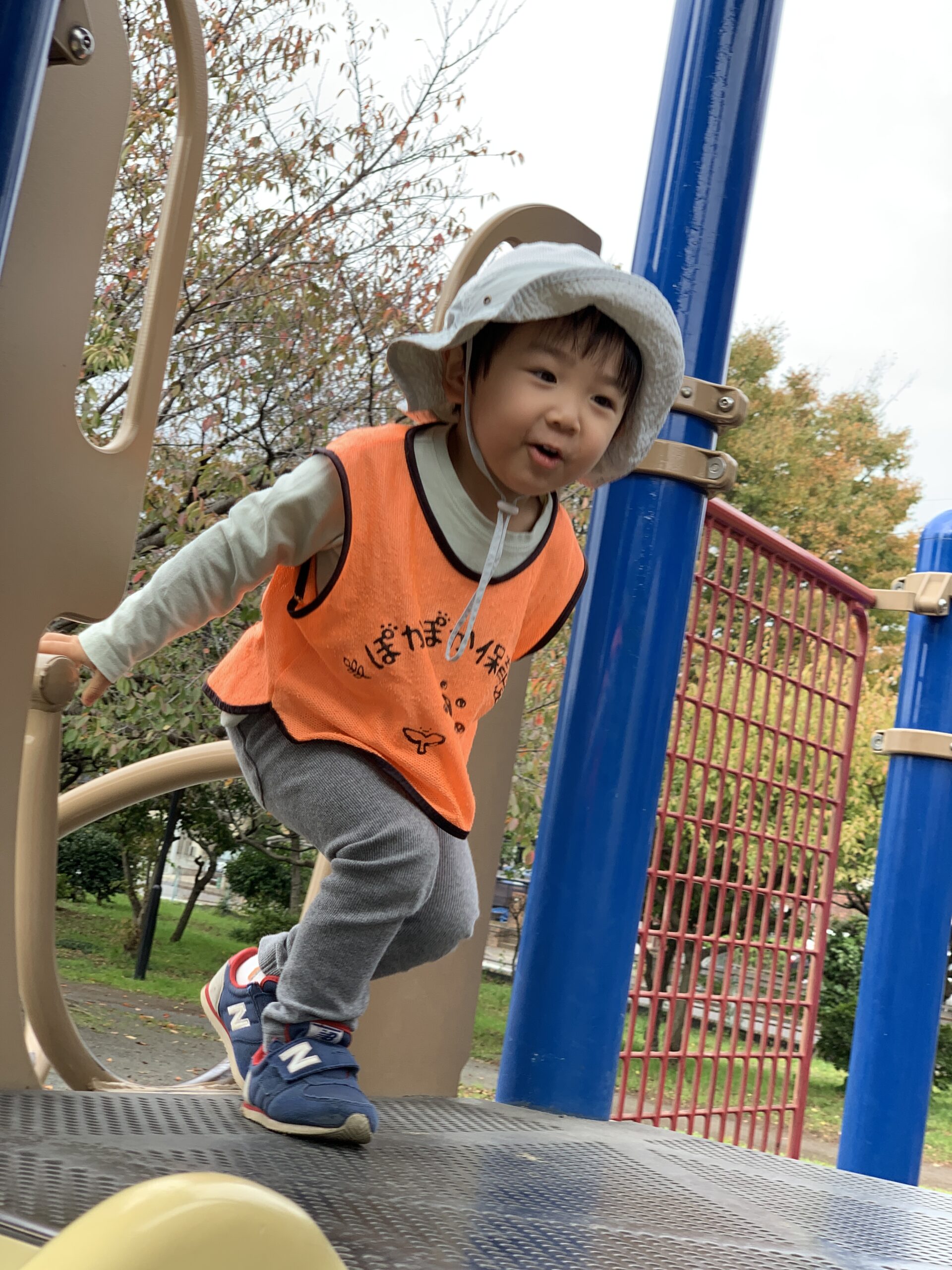 時折吹く強い風にも負けず、子どもたちはいろいろな遊具で身体を動かして元気いっぱいに遊んでいました。