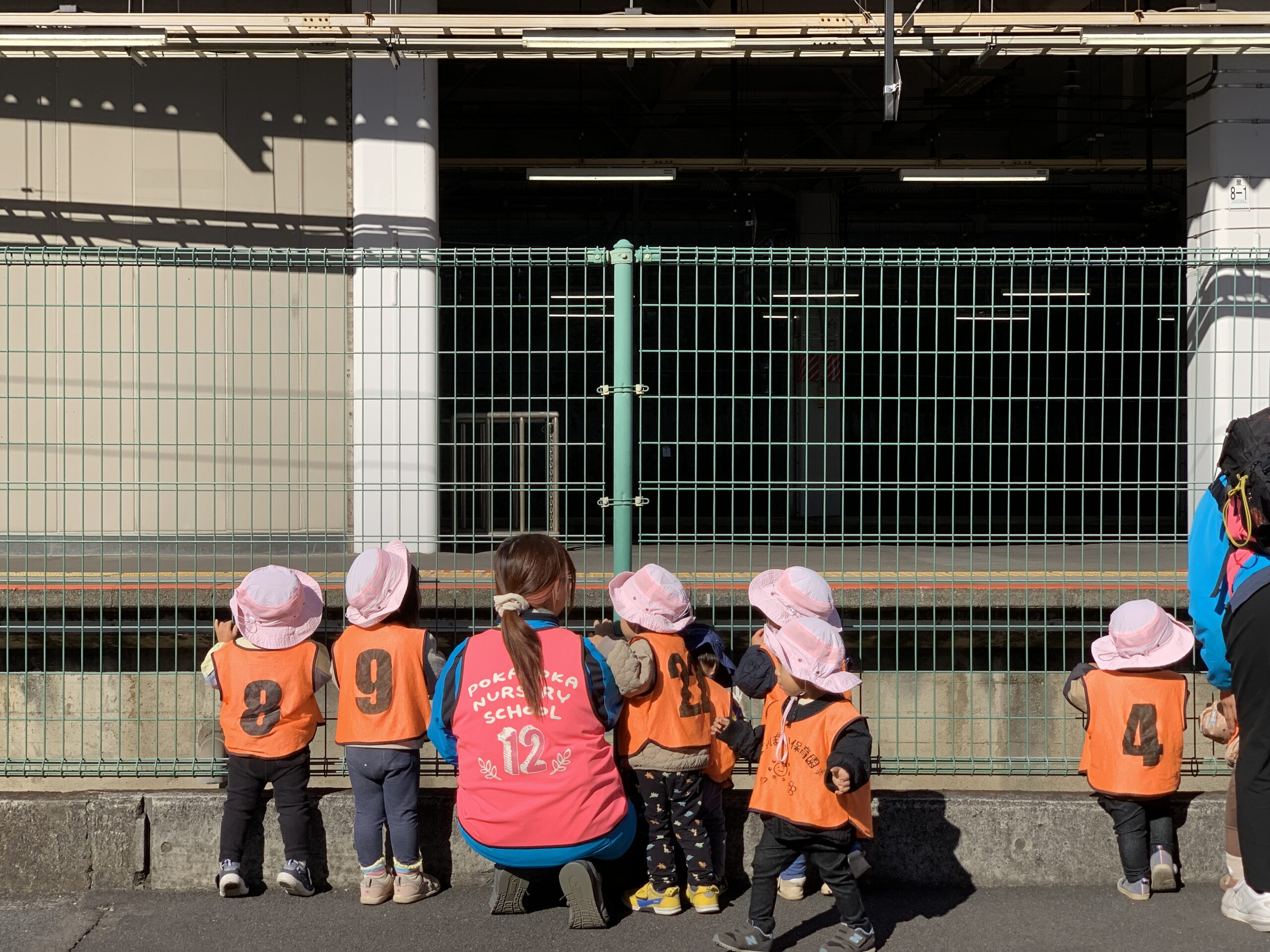 電車が近づいてくる音が聞こえると、「あっ!」と指をさして、みんなで電車が来るのをじーっと待ちます。