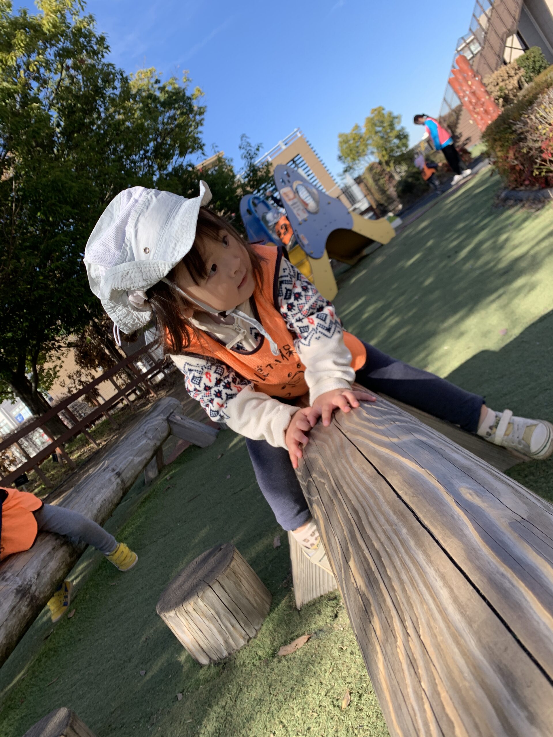 大きな滑り台をシューッと滑り降りたり、ちょっぴりドキドキしながら丸太の上に乗ってみたり。