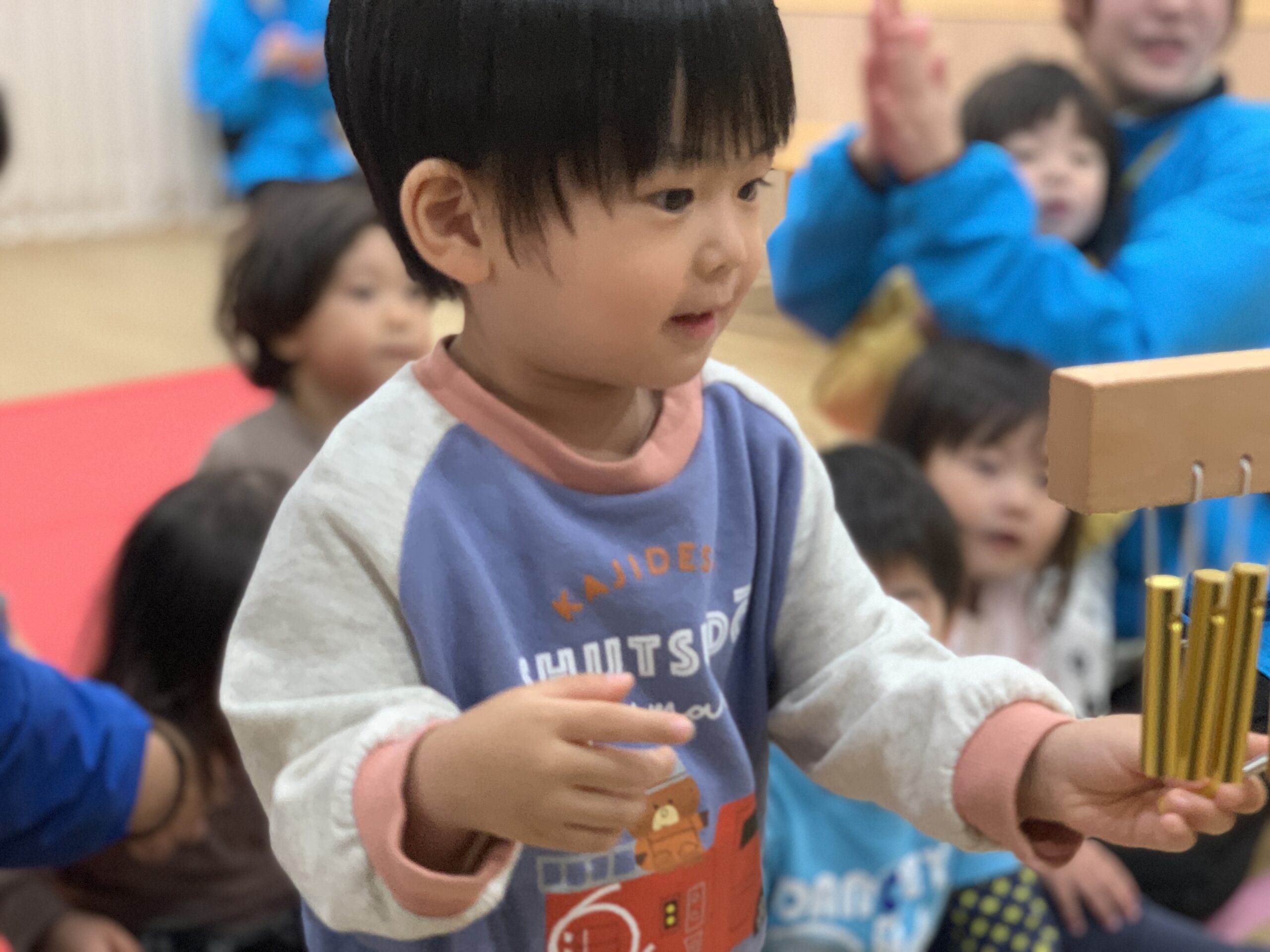 先生がハンドベルで「ジングルベル」の演奏を始めると、子どもたちは目をキラキラさせて聞き入っていましたよ。