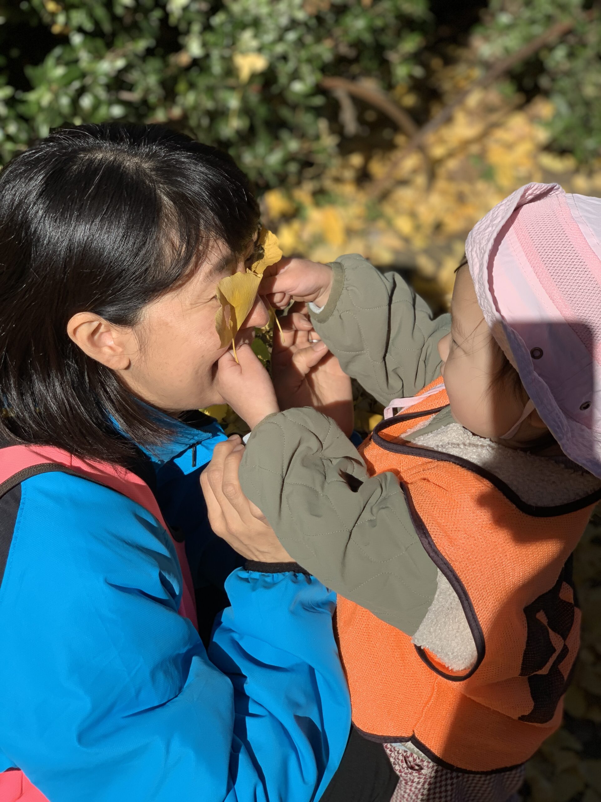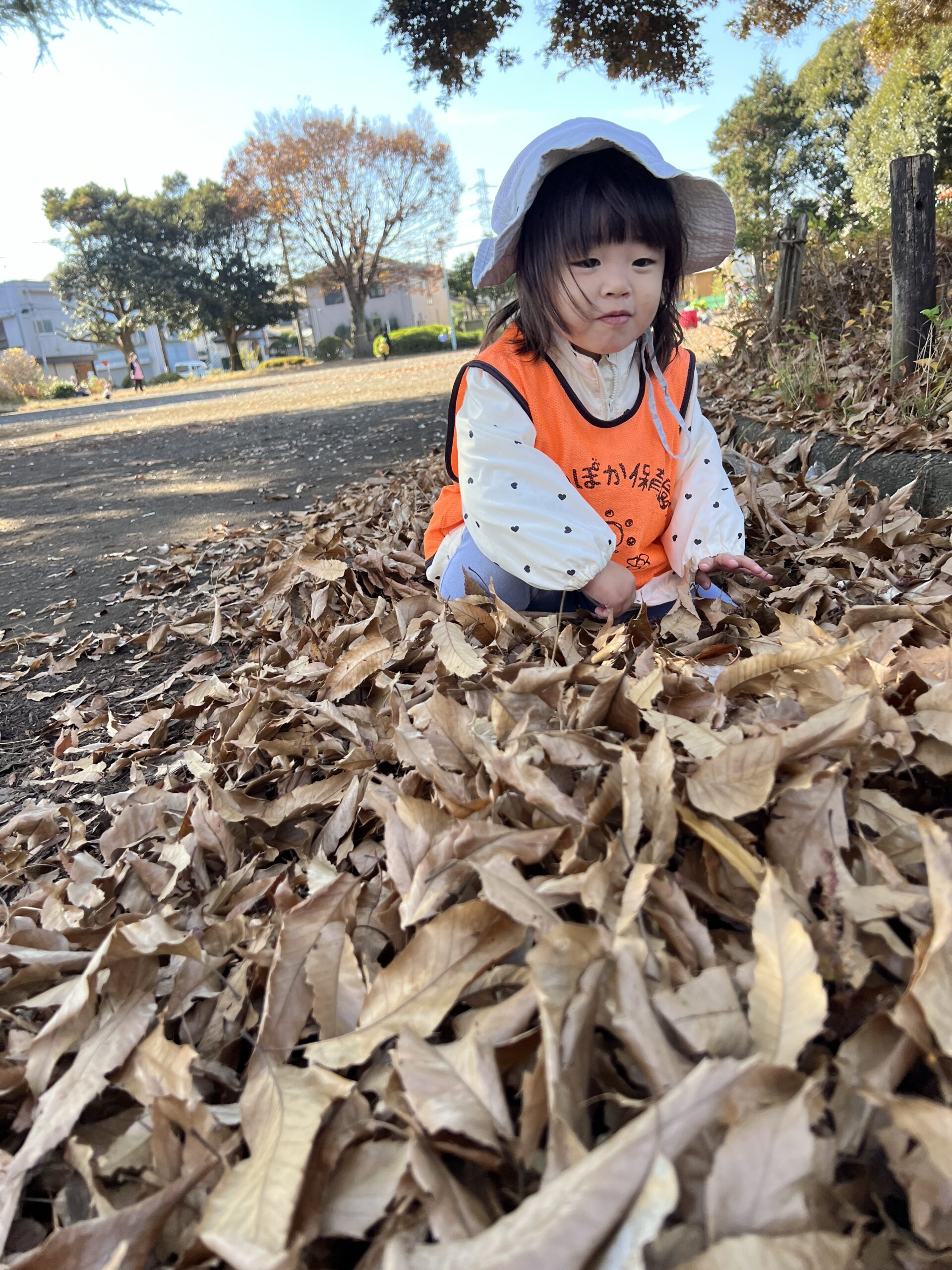 ひらひらと舞い落ちる葉っぱを目で追いかけたり、「カサカサ」という音を楽しんだり。
