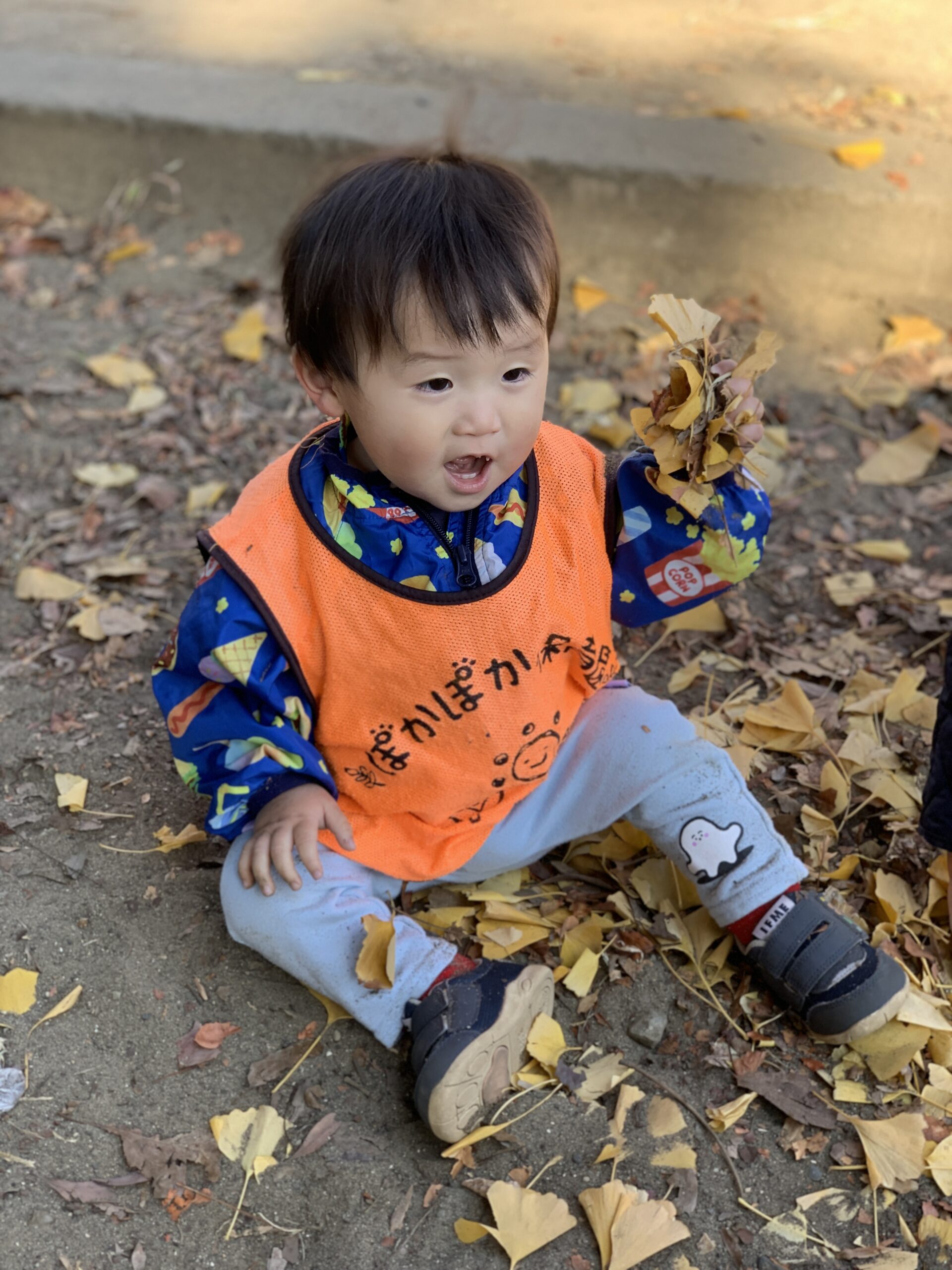 ひらひらと舞い落ちる葉っぱを目で追いかけたり、「カサカサ」という音を楽しんだり。