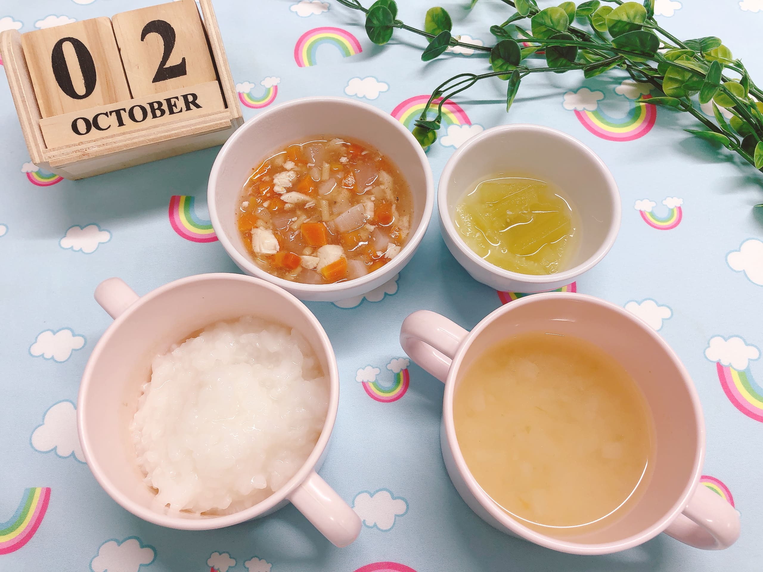 コーンの自然な甘みを生かし、じっくり加熱した玉ねぎを合わせて仕上げました。優しい甘さのスープに食パンをつけて、子どもたちは「スープがなくなっちゃった!」とおかわりをねだるほどの人気ぶりでした。