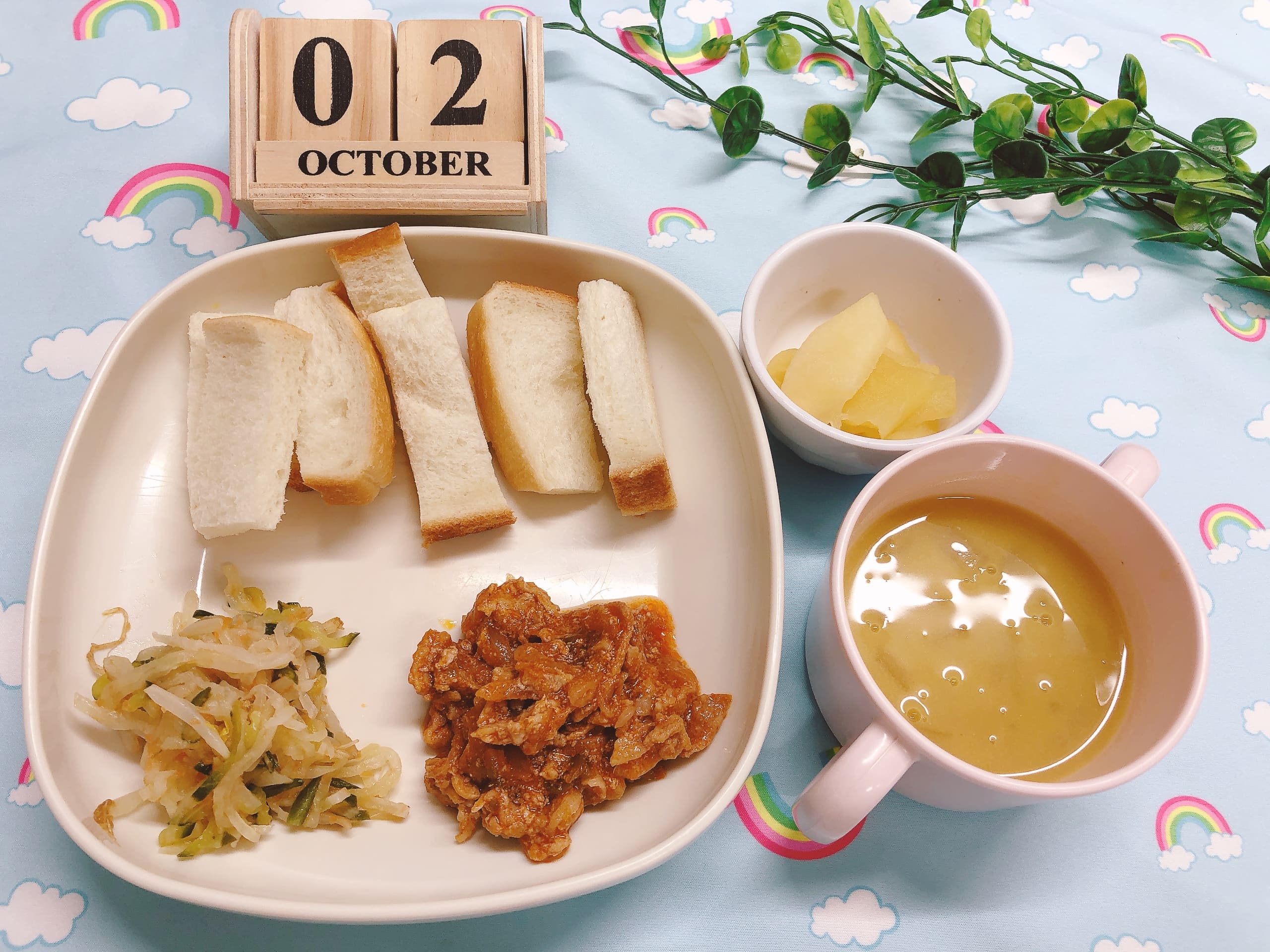 国内産小麦を使用したふんわり食パンを一口大にカット。コーンスープやケチャップ炒めのソースをつけやすい大きさにして提供しました。子どもたちは「パンにスープをつけるとおいしい!」と新しい食べ方を発見し、楽しそうにディップしてモリモリ食べていました。
