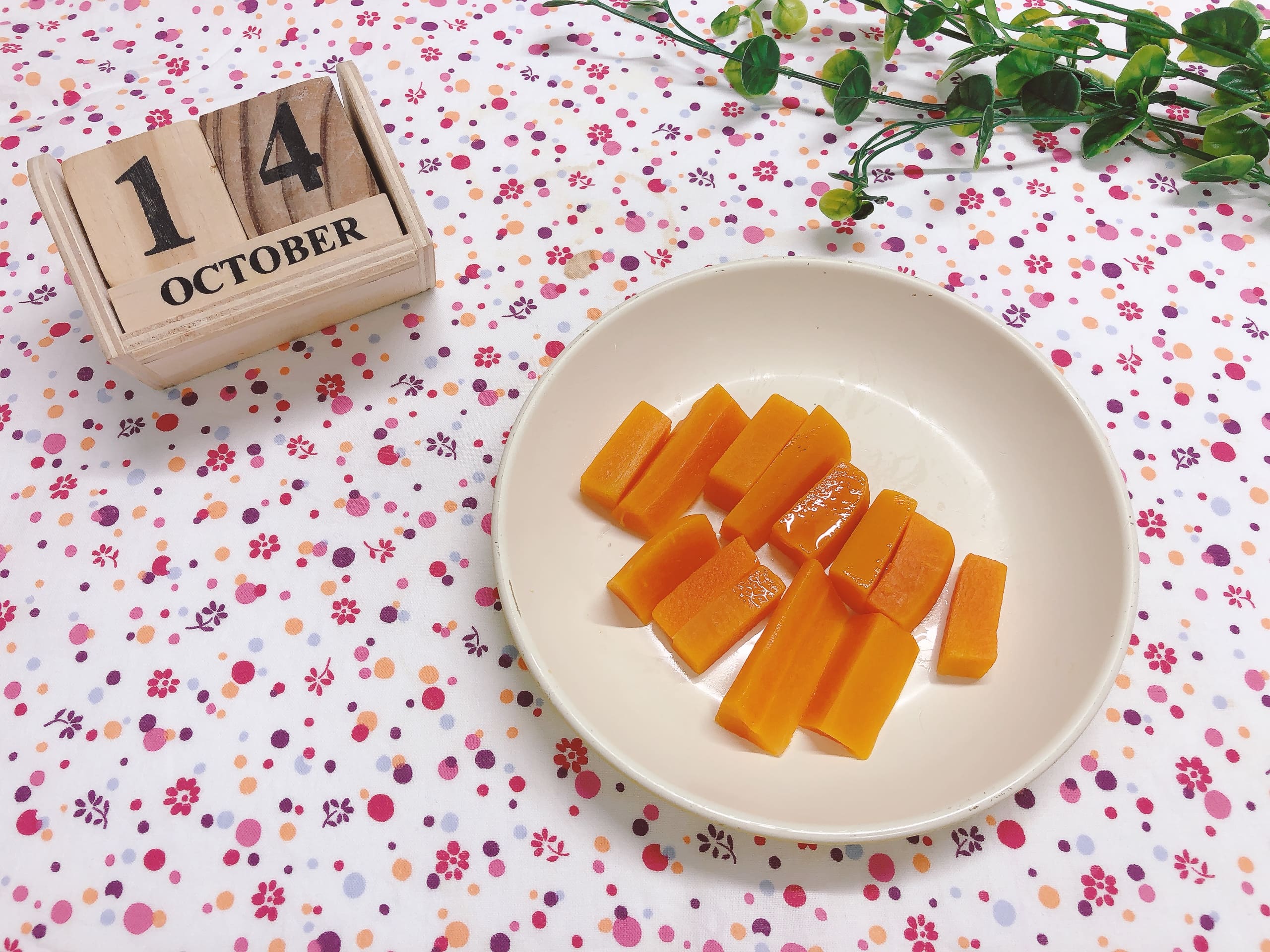 程よい甘さととろける食感が、デザートとして大人気。「デザートたのしみ!」と目を輝かせ、笑顔で完食する姿が印象的でした。