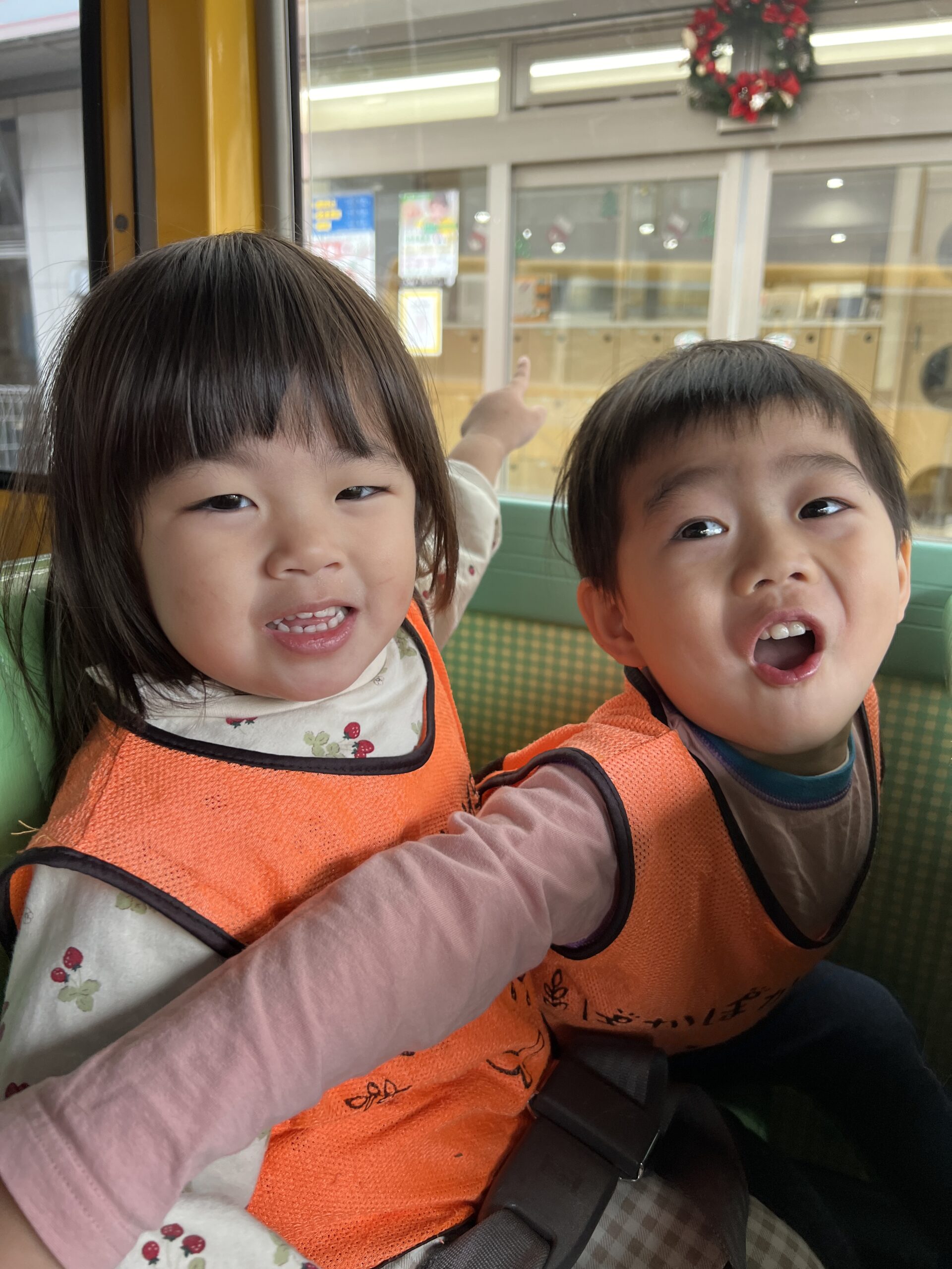 また、石の椅子に座って先生やお友だちと一緒に「バスごっこ」も楽しみました♪