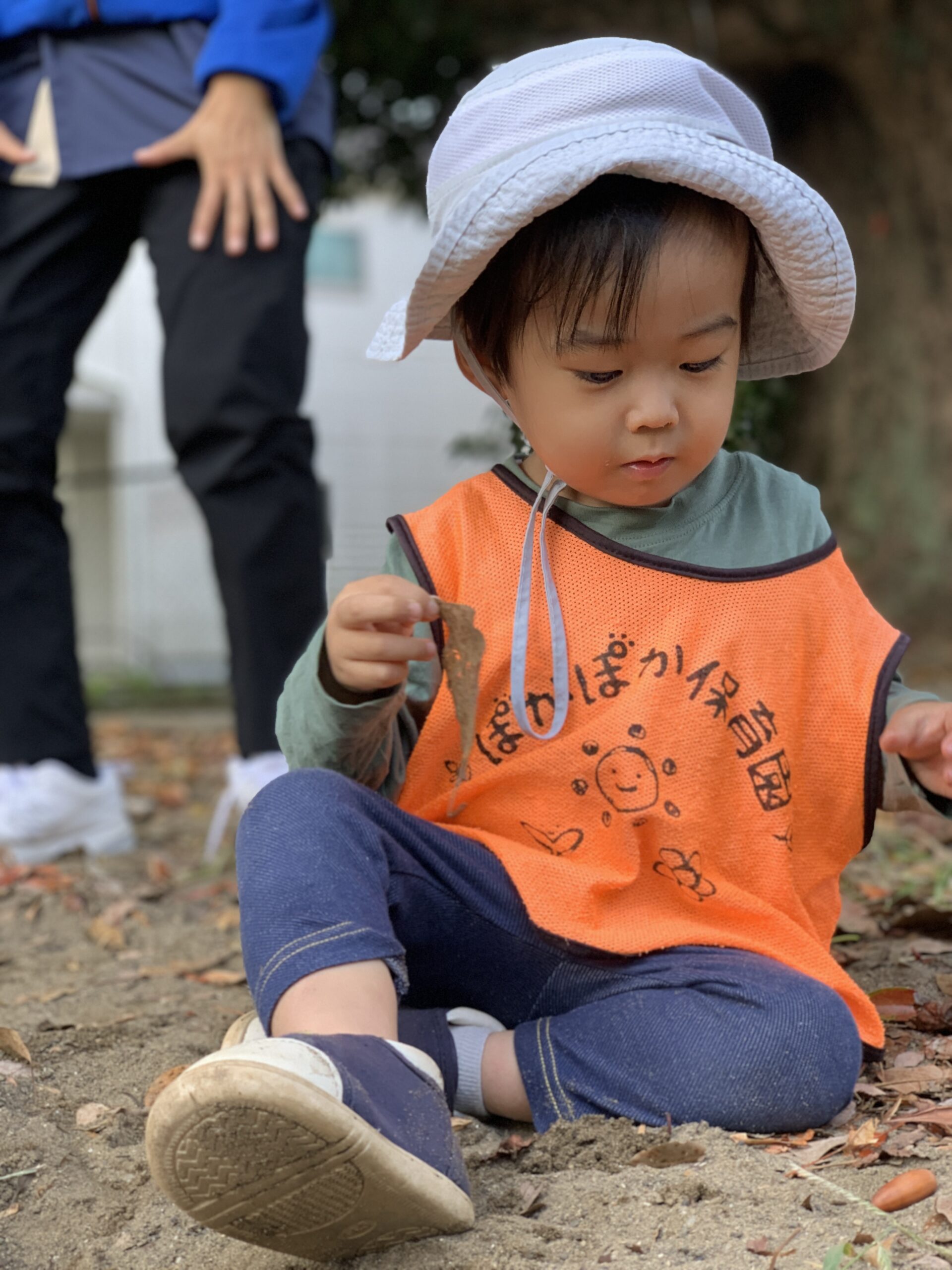 「せんせい、見て!おおきなどんぐり!」と、見つけたどんぐりを嬉しそうに見せてくれました。