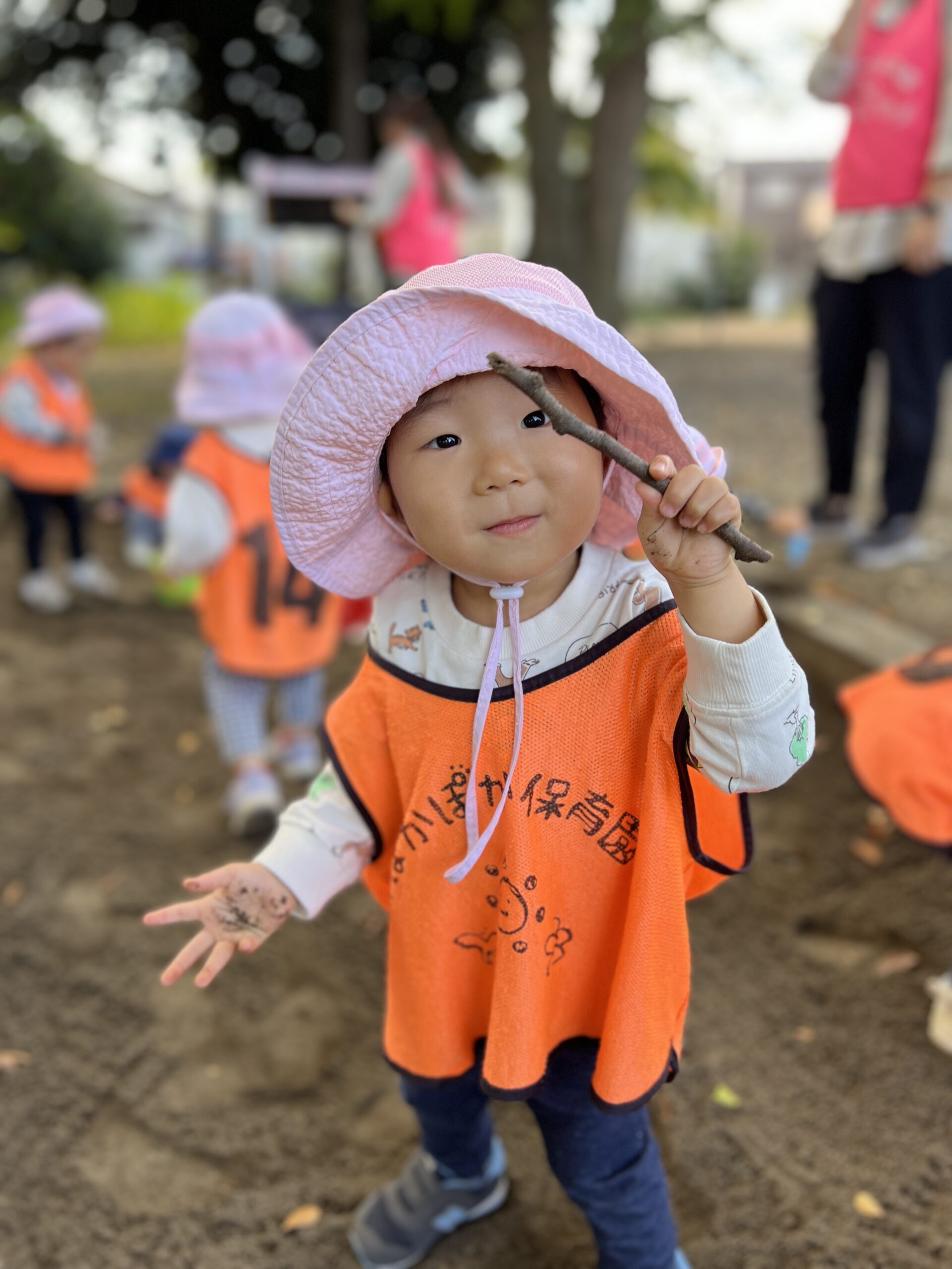 今日は砂場セットを使って、サラサラの砂を集めてみたり、スコップや型抜きで夢中になってお山や形を作ったりと、思い思いに楽しんでいました!秋ならではのどんぐり拾いも大人気!