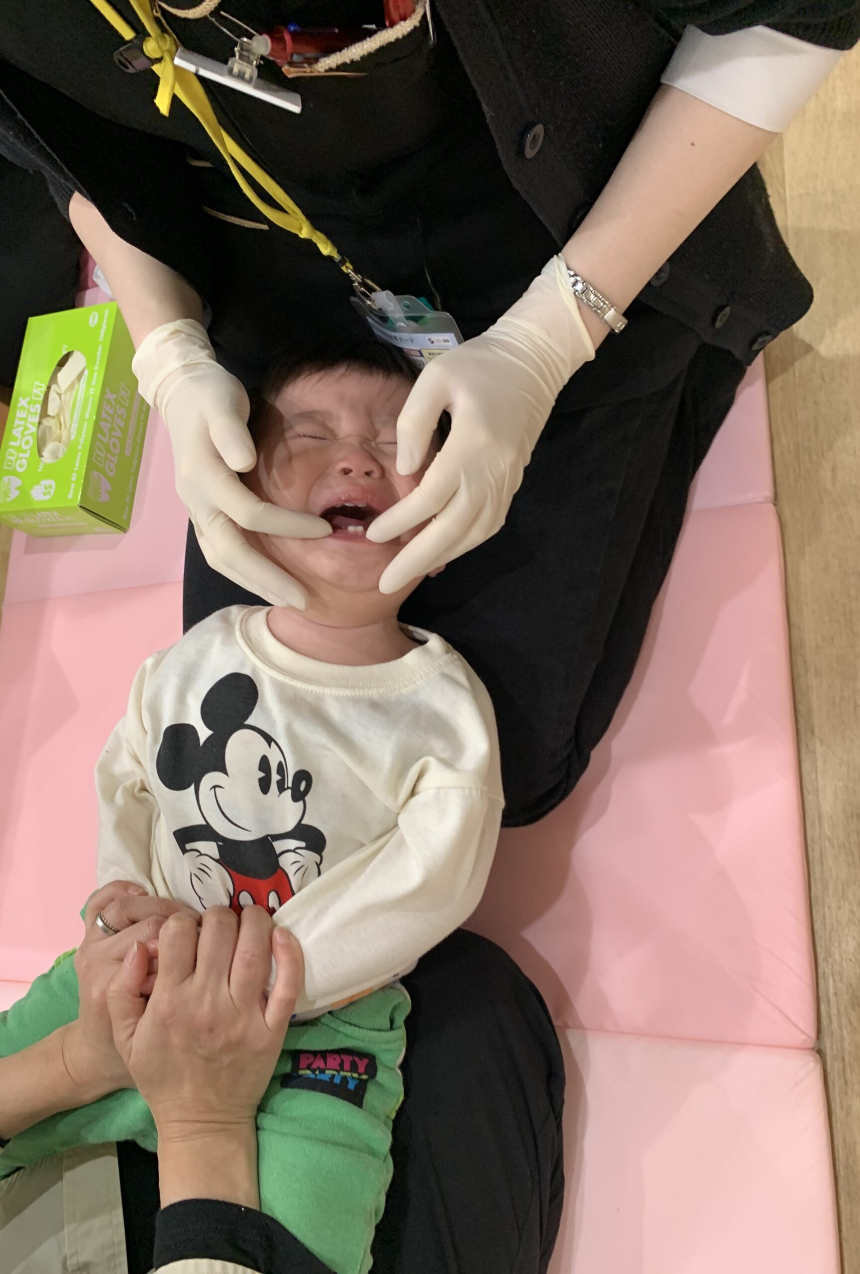 初めての場所で口を開けることに、ちょっぴり緊張したり、中には「いやだー!」と大号泣してしまう子もいましたが、子どもたちはみんな本当によく頑張りました!