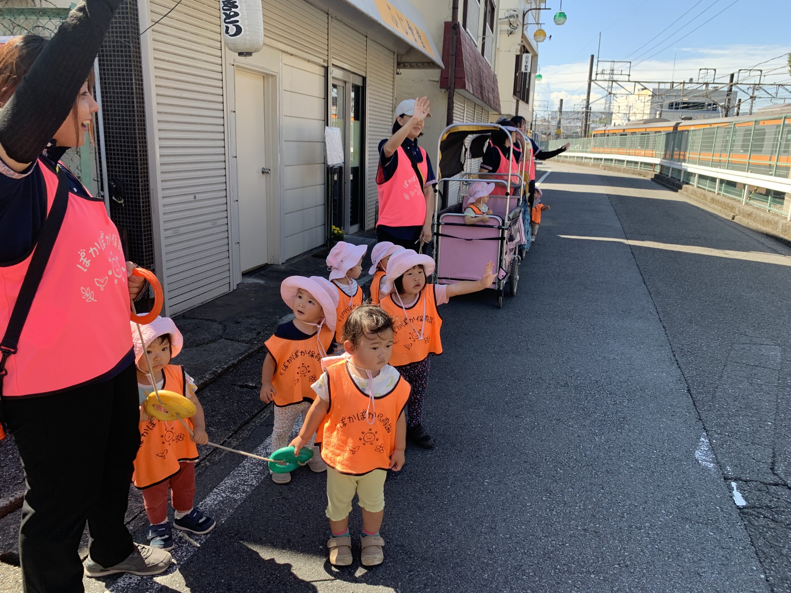 ぽかぽか保育園では、乳児保育における小さな発見や驚きを大切にしています。特にお散歩は、地域の自然や環境に親しみながら、子どもの好奇心を育てる大切な学びの場。電車の音や風景に出会うことで、日常の中に新しい発見があり、先生がそっと言葉を添えることで、体験が子どもたちの中で深まっていきます。