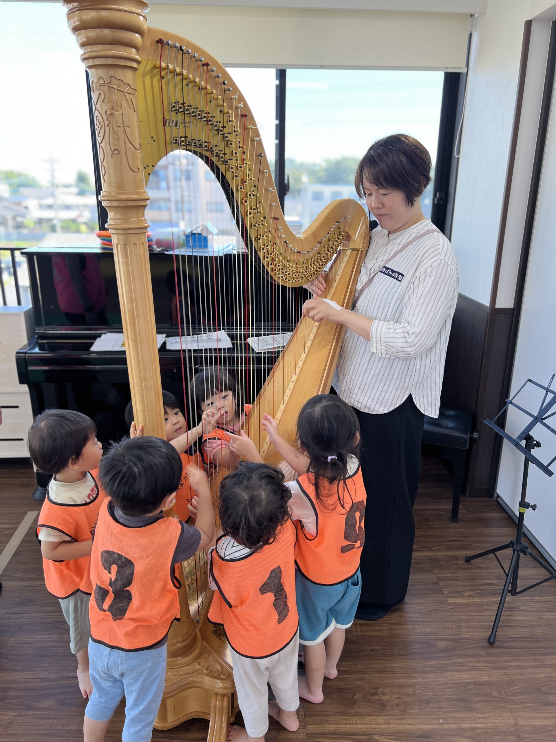 虹組は本園で音楽のハープに参加しました。この日は高倉園のお友だちとも一緒で、賑やかな雰囲気の中で活動が広がりました。