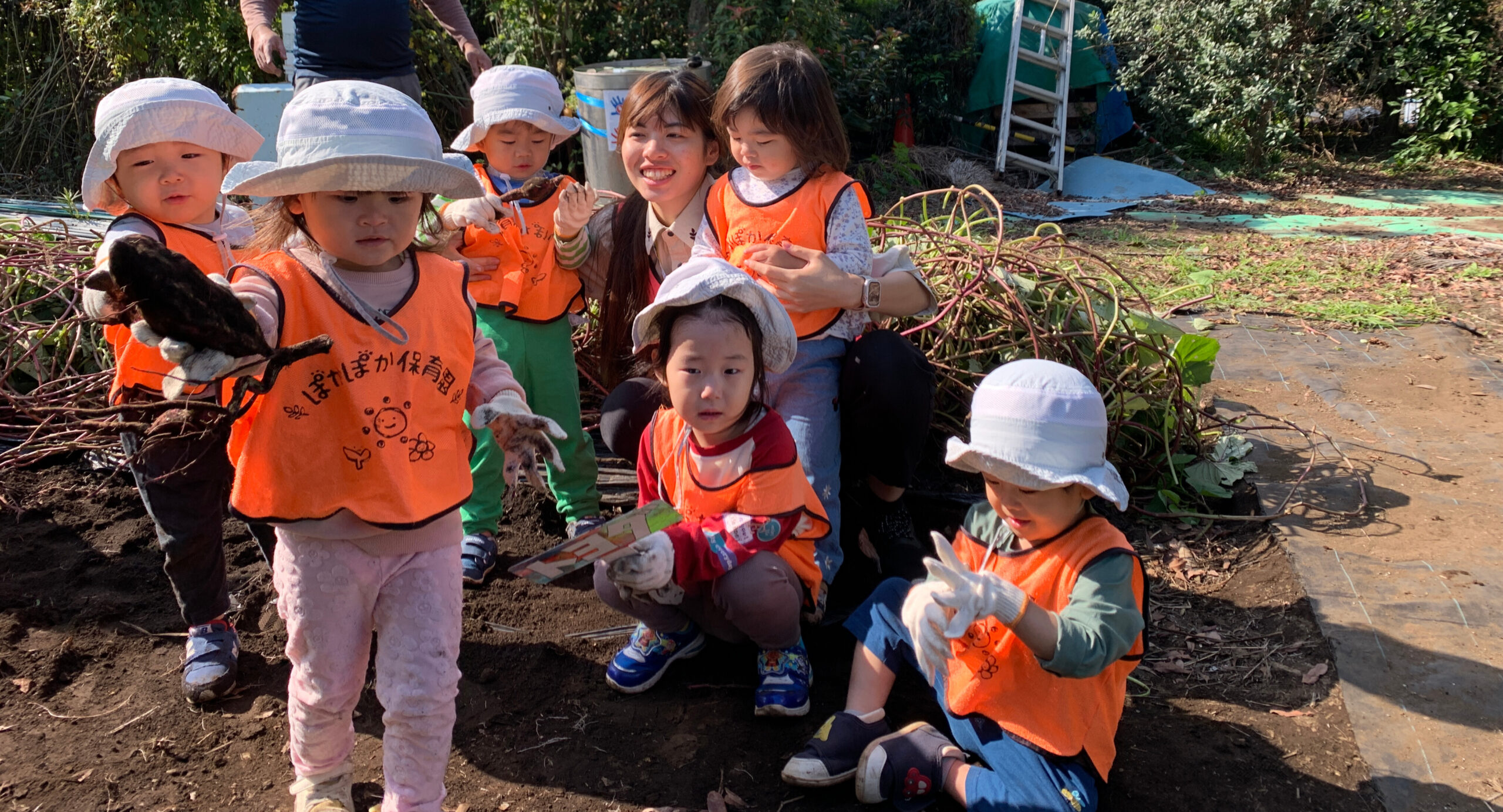 「うんとこしょ!どっこいしょ!」と小さな手で掘り出す姿はとてもたくましく、収穫の喜びを全身で感じていました。
