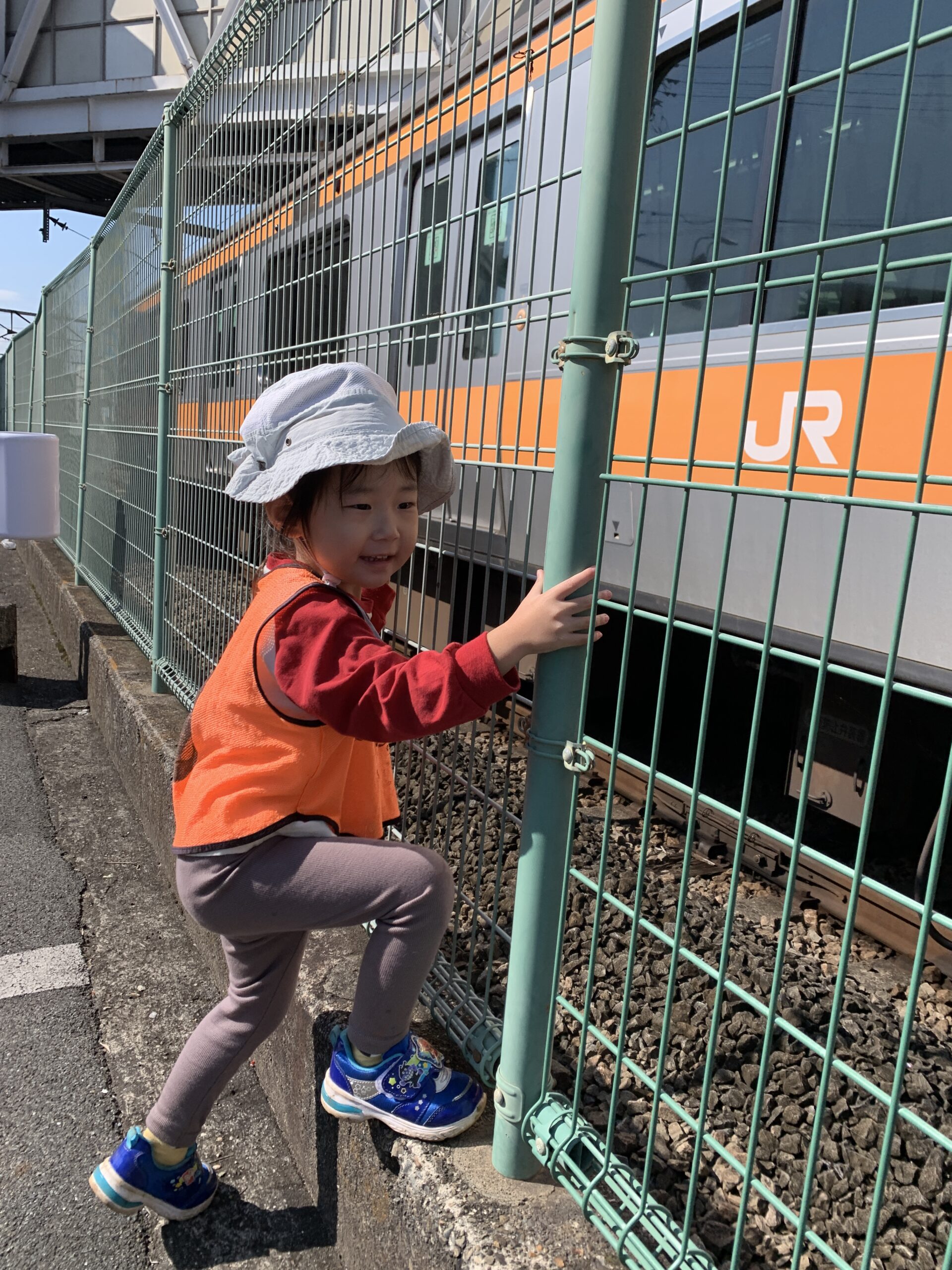 保育園に戻ってからは、みんなで電車を見にお散歩へ。
