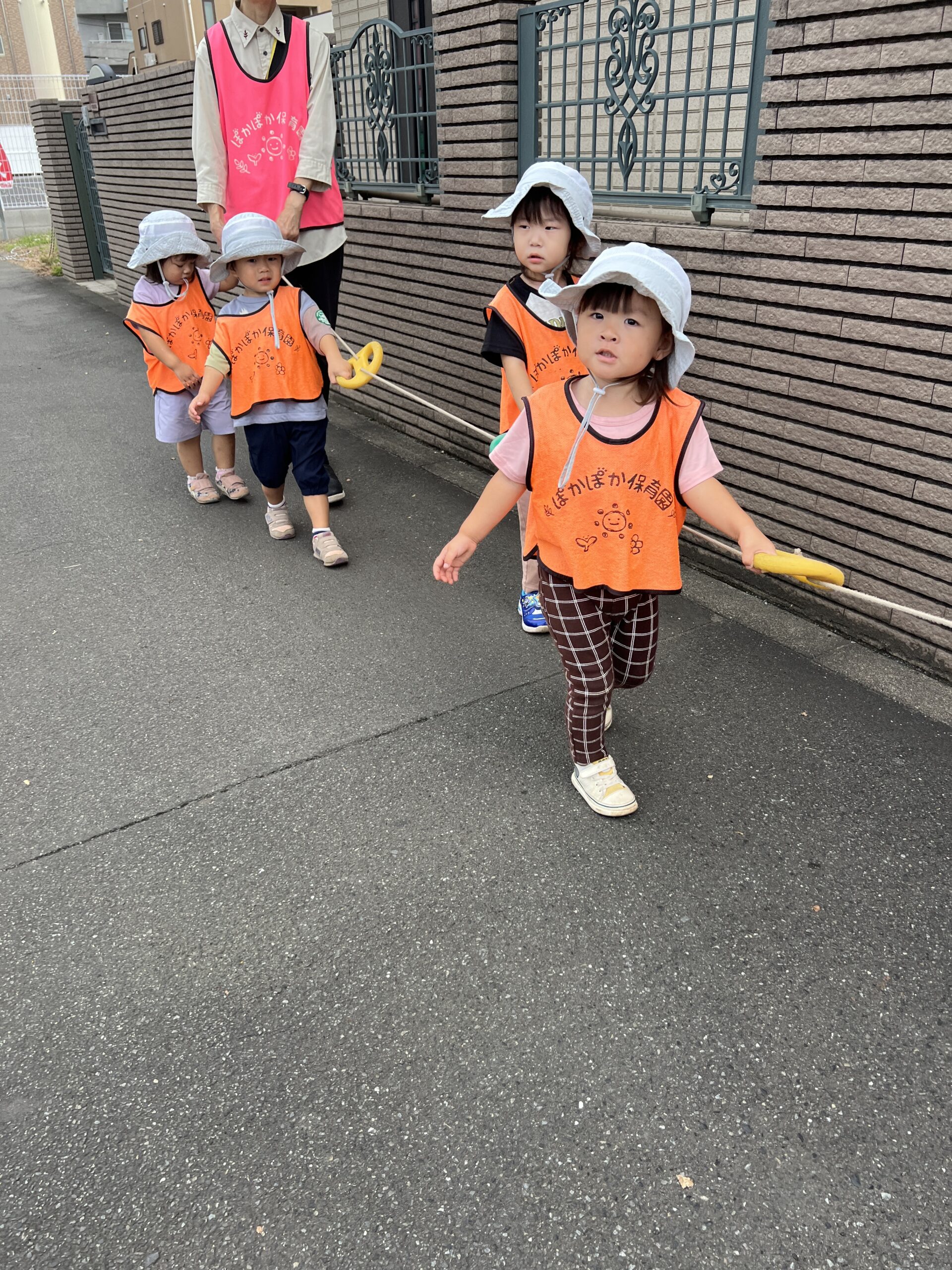今日のお散歩はいつもより長かったのですが、子どもたちは「がんばるぞー!」と声を出しながら、