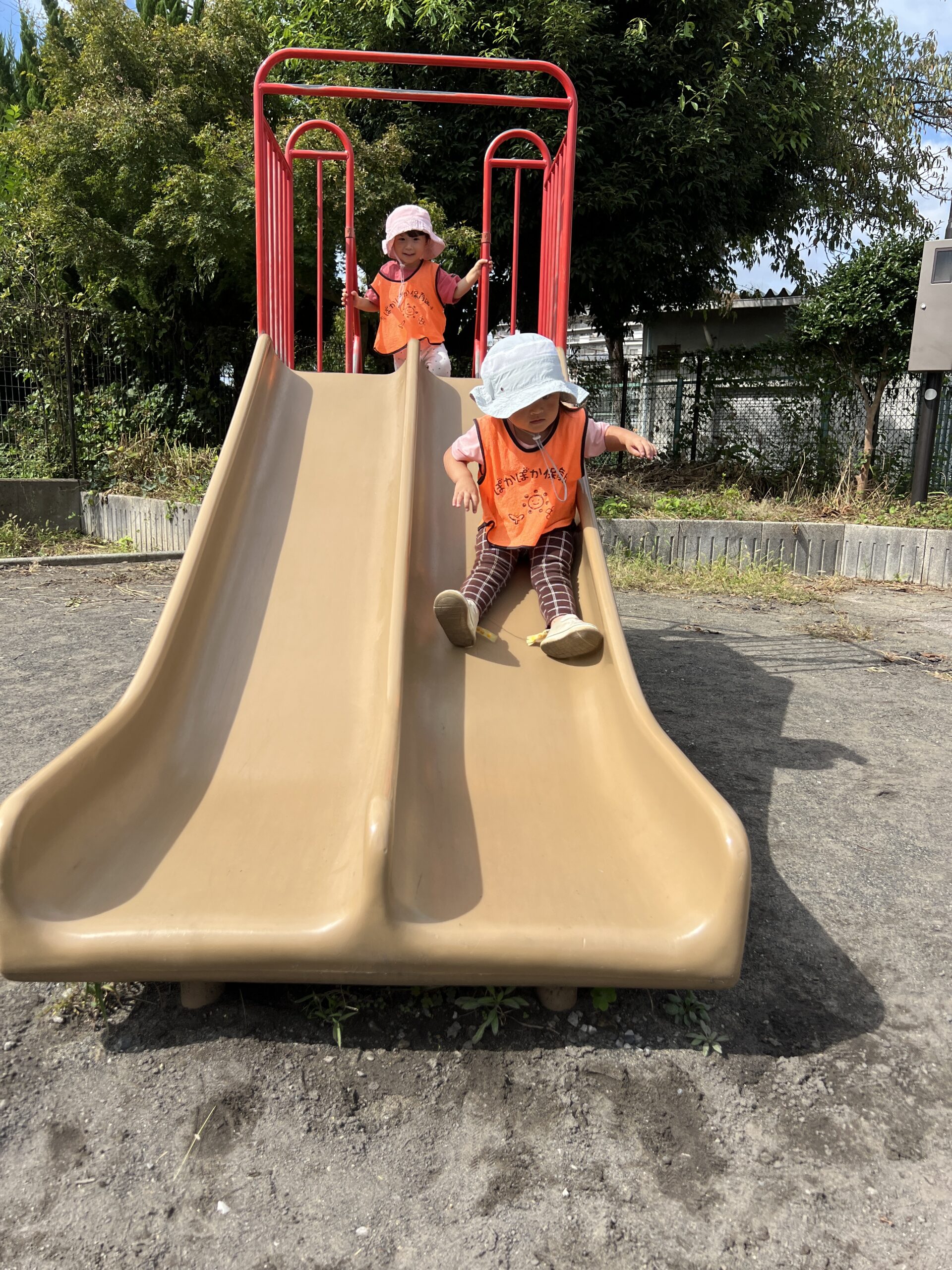 虹組(2歳児)さんは、少し足を伸ばして少し遠い公園へ!