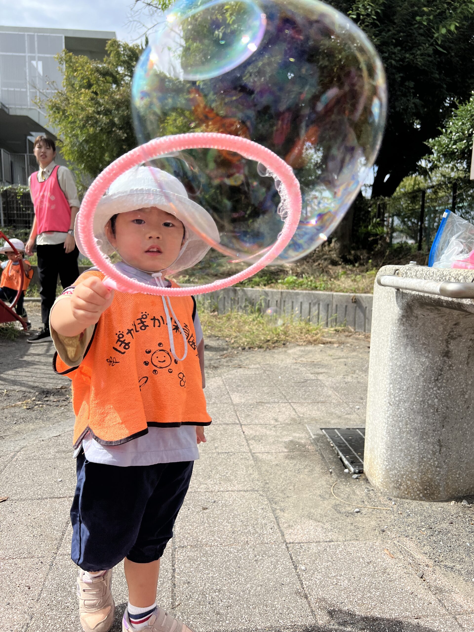 シャボン玉がフワフワと舞う様子や、パチンと弾ける瞬間に、子どもたちは目を輝かせていましたね!