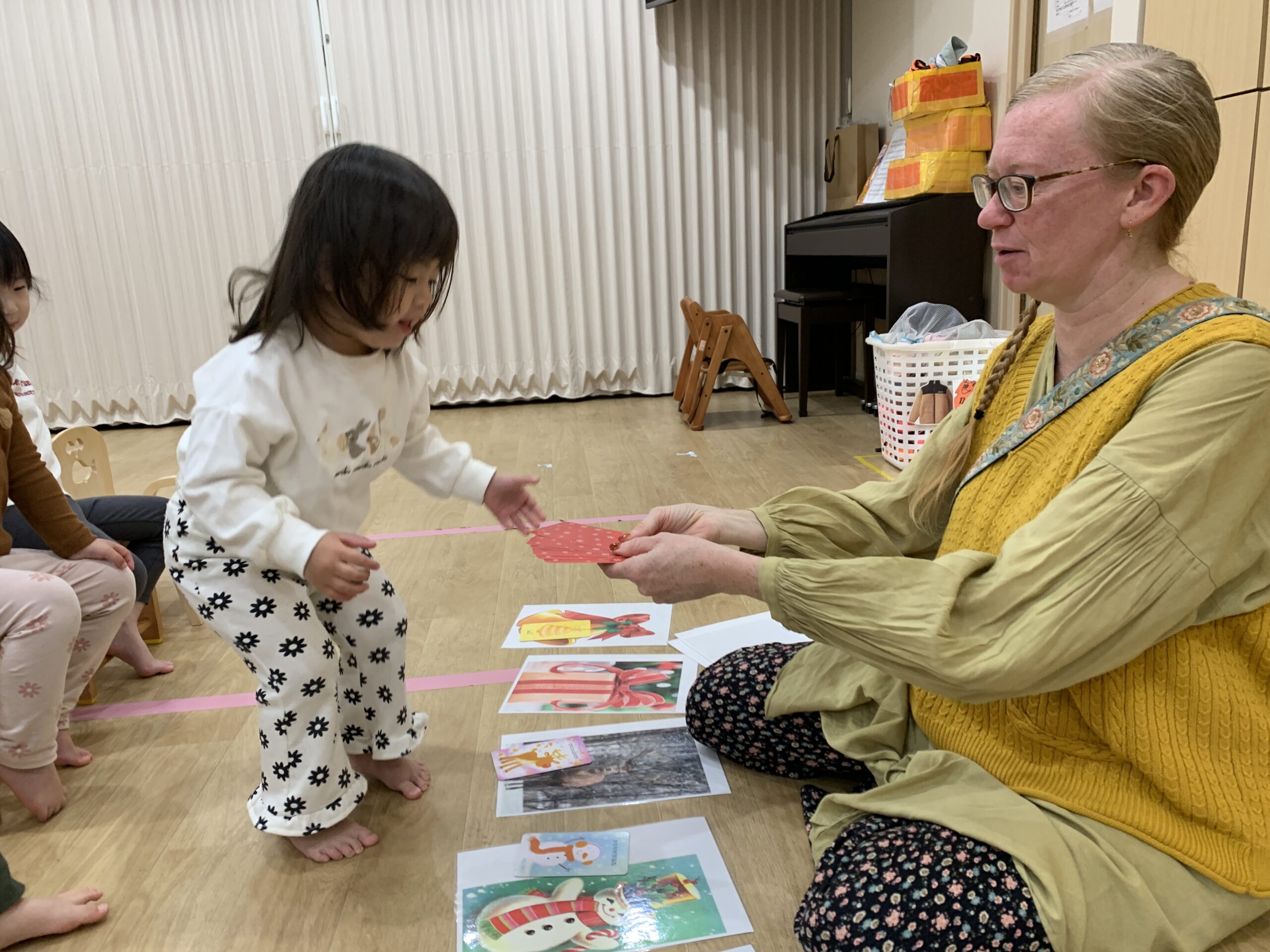 音楽が流れると体を揺らしたり、カードをじっと見つめたり、子どもたち一人ひとりの楽しみ方があってとても微笑ましい時間でした。