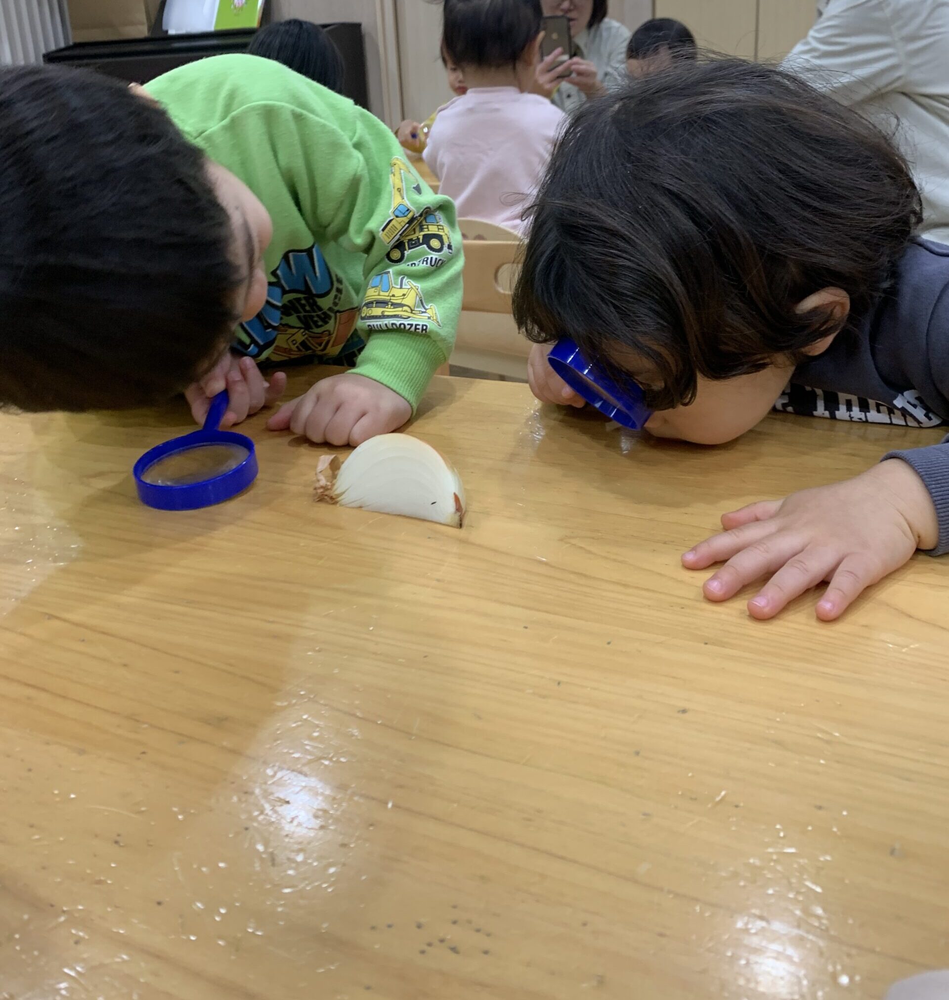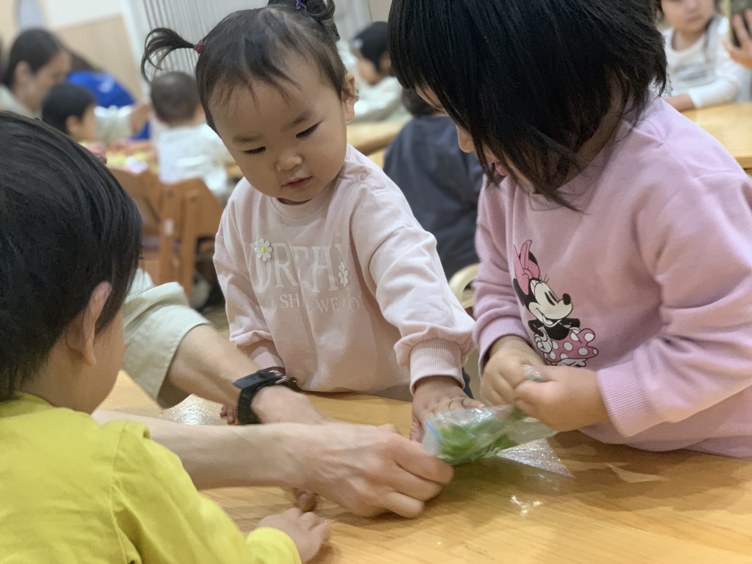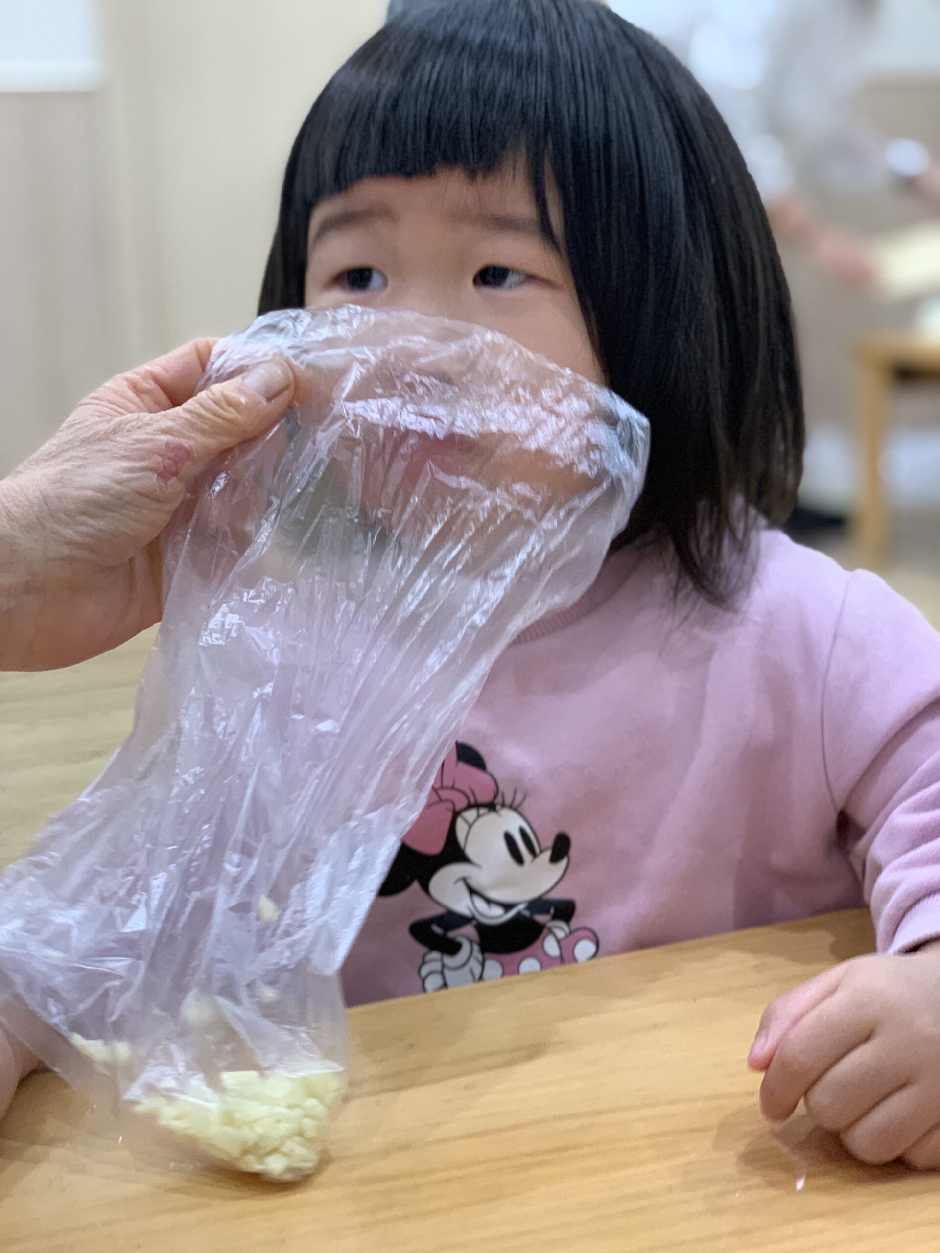 「くさーい!!」「餃子みたいな匂いがするね!」「給食の匂い」「お腹すいちゃった」など、会話がたくさん生まれました!