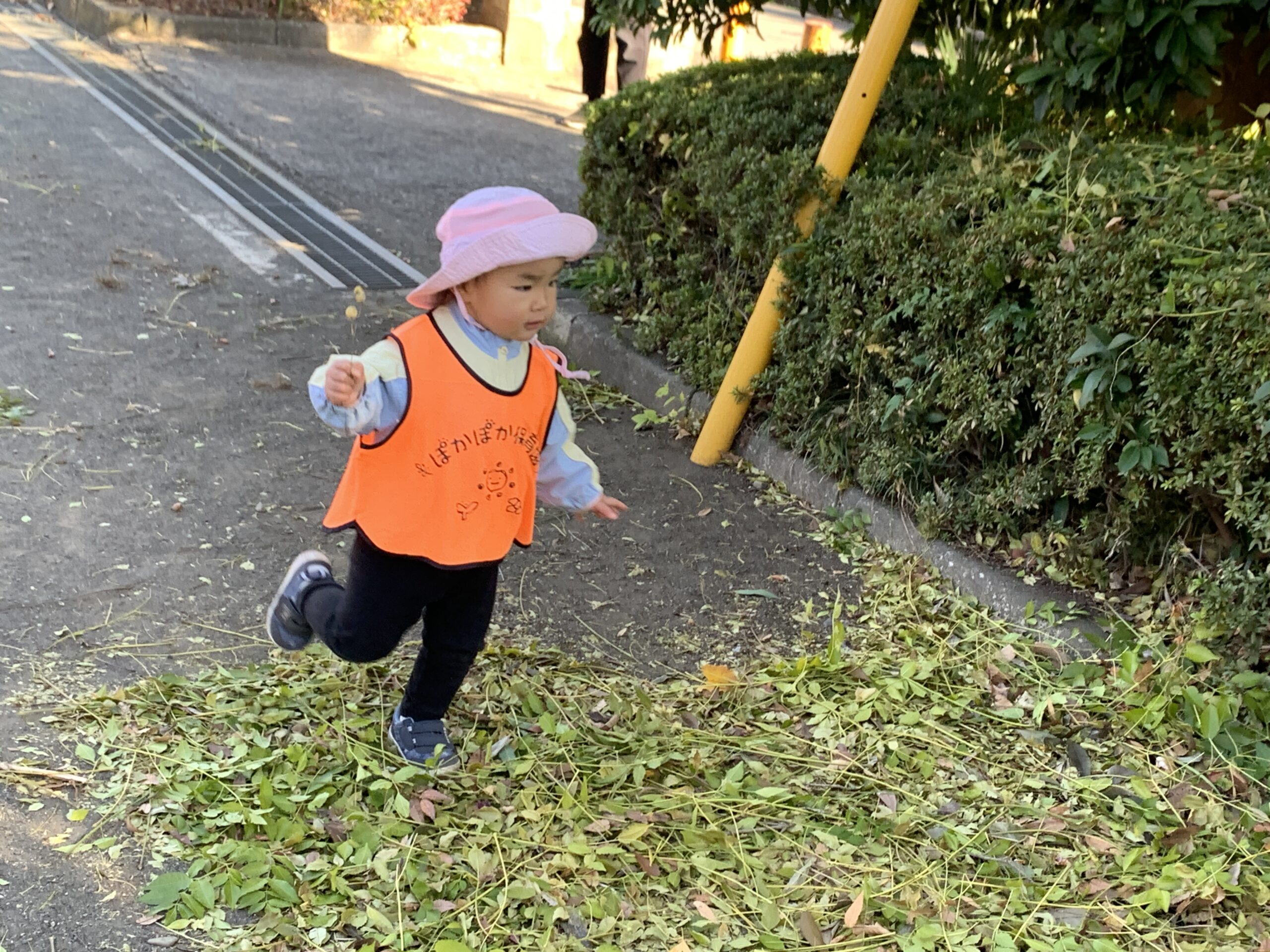 今日は風が強く、落ち葉がひらひらと舞っていて、子どもたちは大興奮!