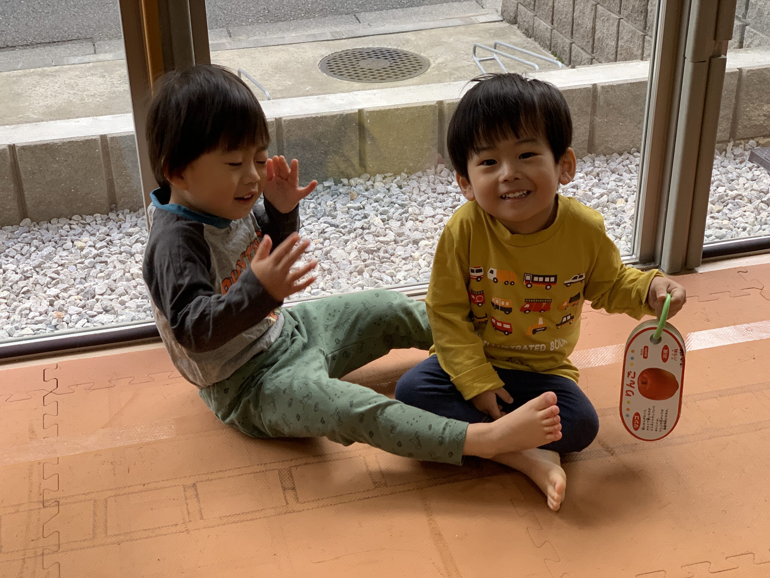 小さな手で一生懸命リズムを刻む姿がとても愛らしく、お部屋の中は笑顔と音でいっぱいになりました。