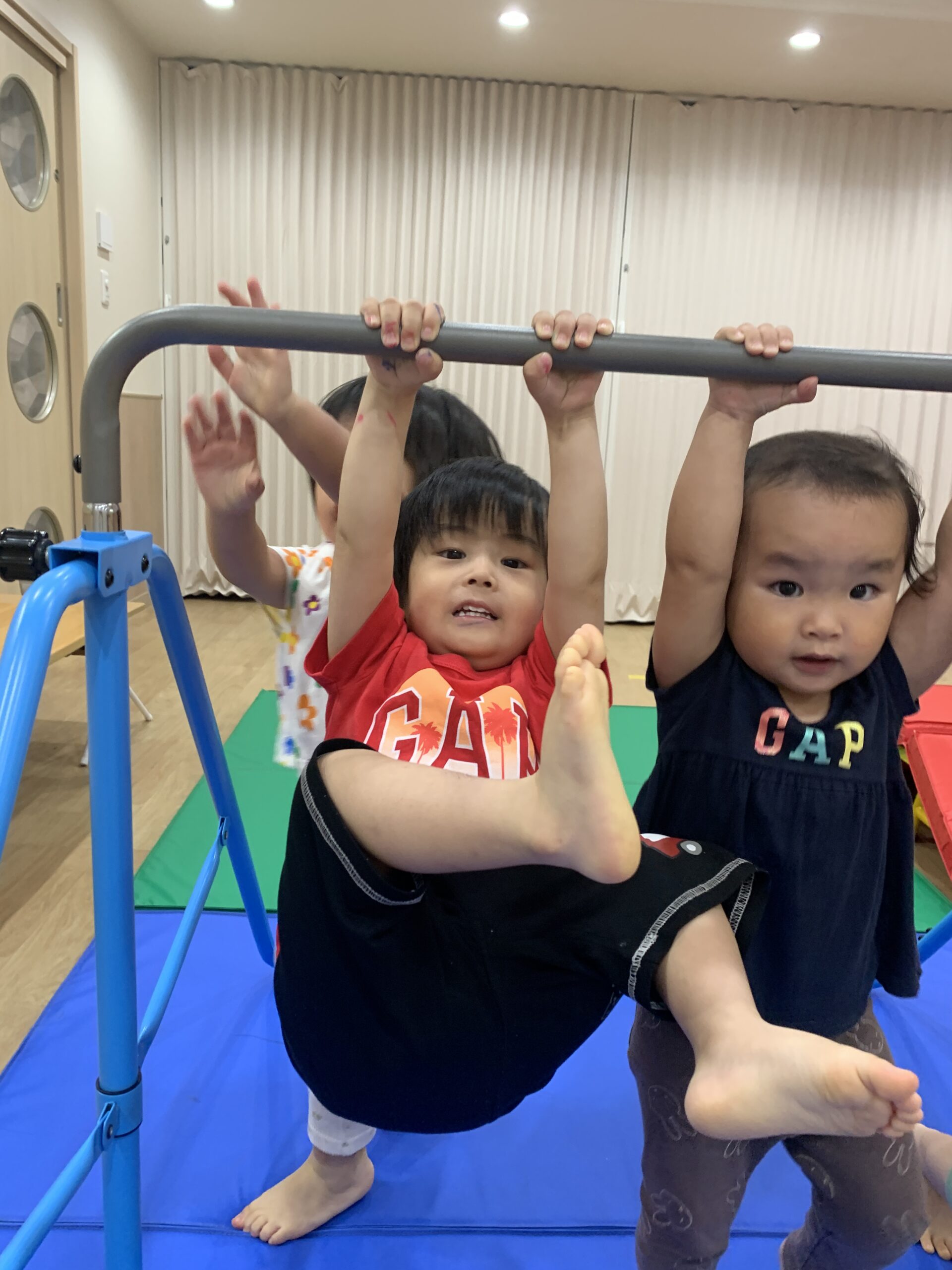 さらに、マットや鉄棒を使った運動遊びも取り入れました。