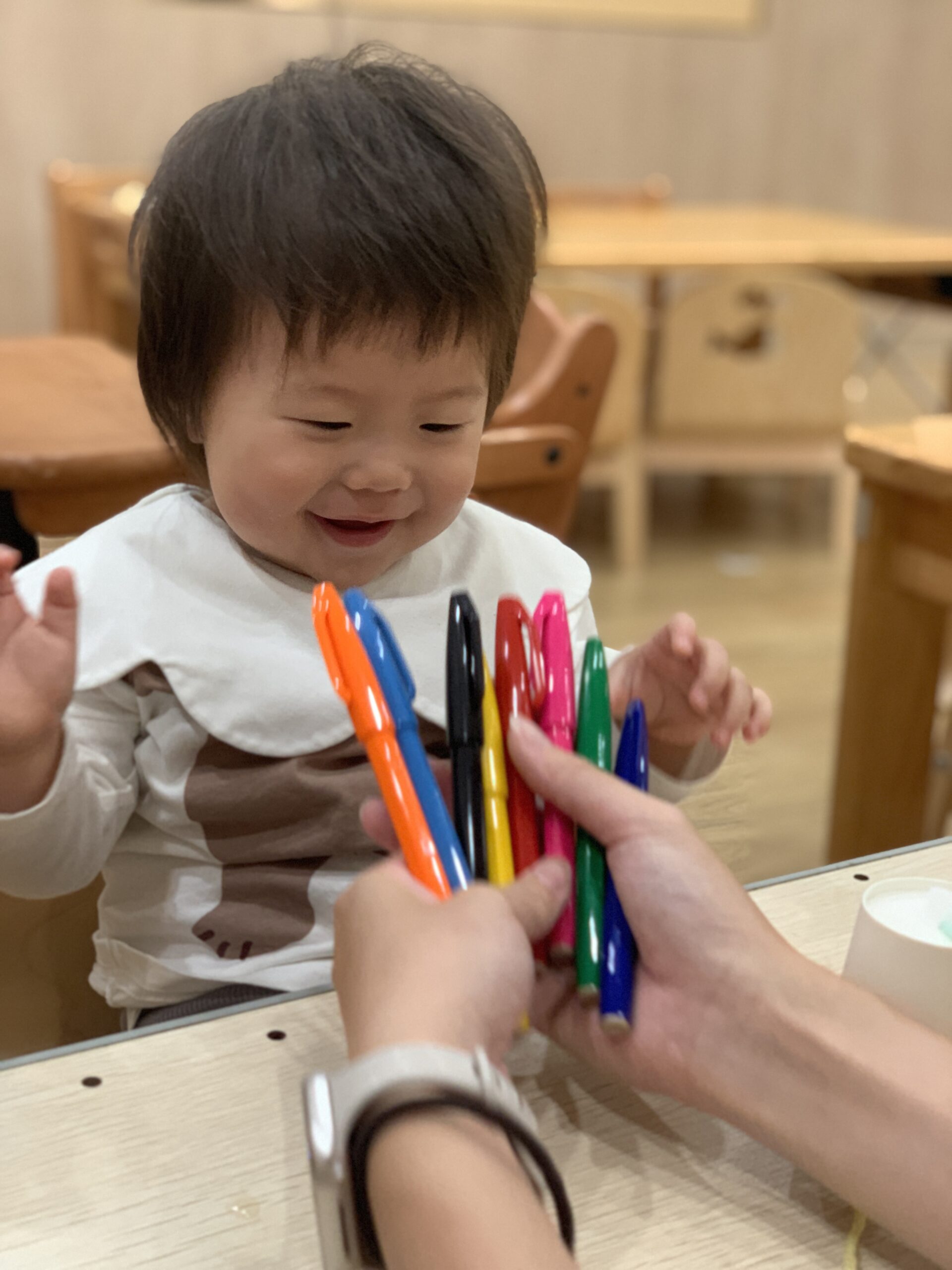 また、乳児保育 では、「ありがとう」「どうぞ」「うれしいね」といったやりとりを通して、人との関わりを自然に学べるよう援助しています。