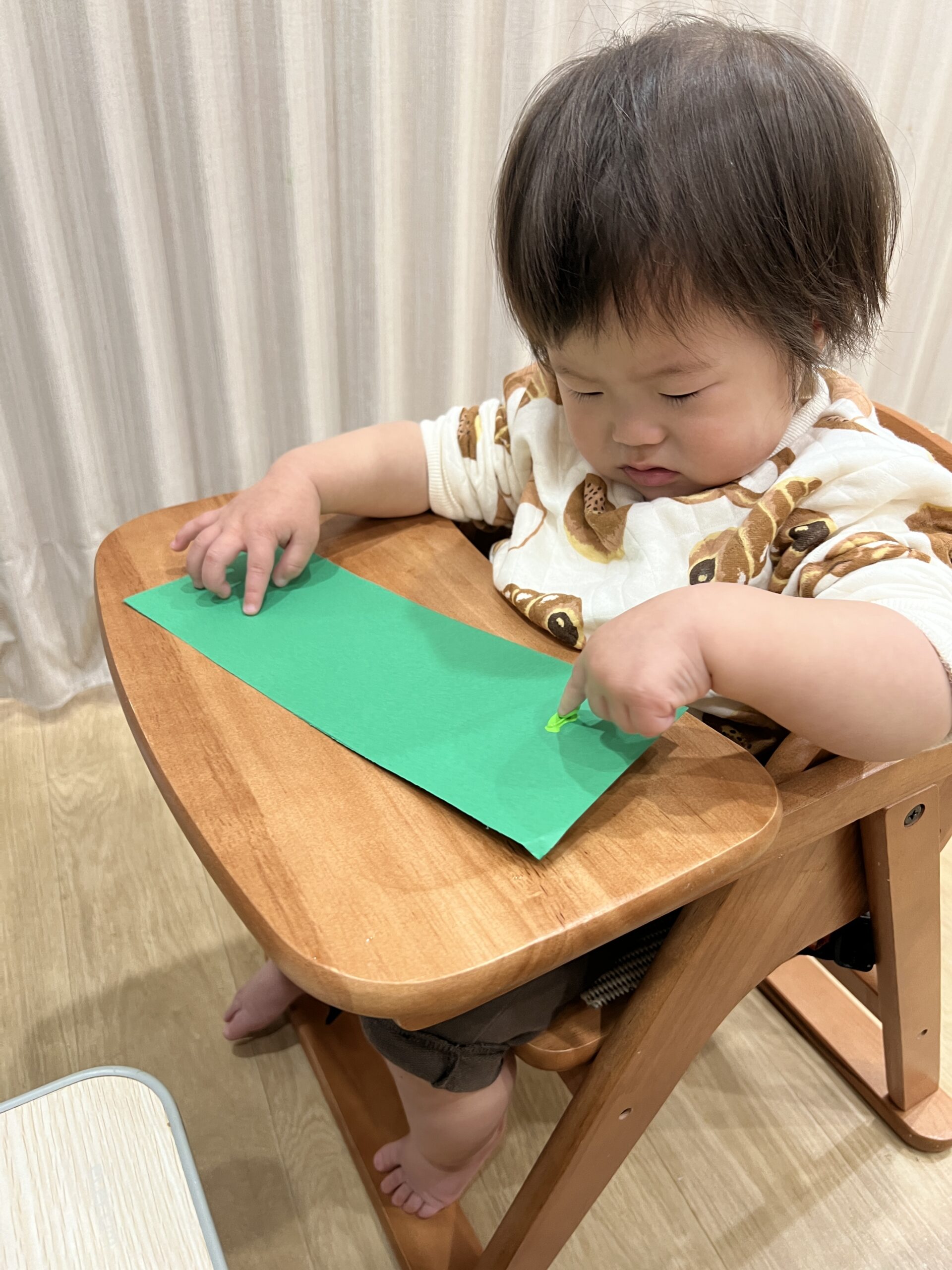 今回の「クリスマスツリーのギロ」製作は、0~2歳児の子どもたちが、それぞれの発達段階に応じた方法で、素材の感触、色の魅力、形を作る楽しさ、そして音を奏でる喜びを体験する、貴重な学びの機会となりました。