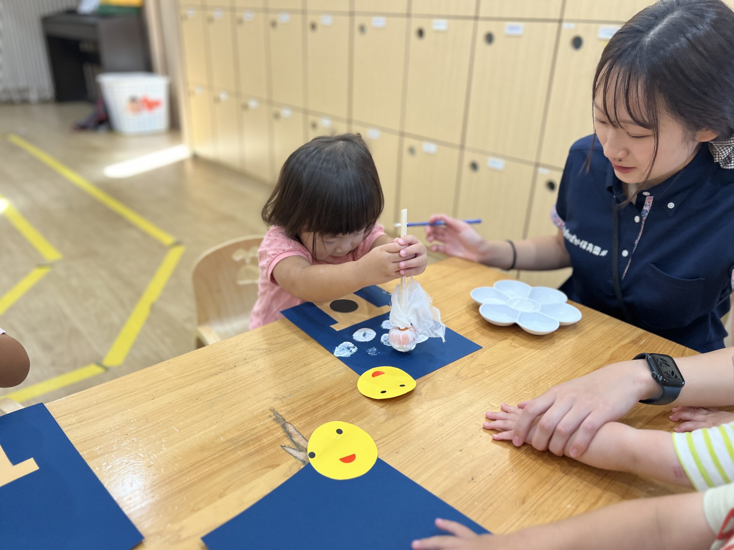 2歳児さんでは、「指先」に着目した製作にチャレンジしました♬